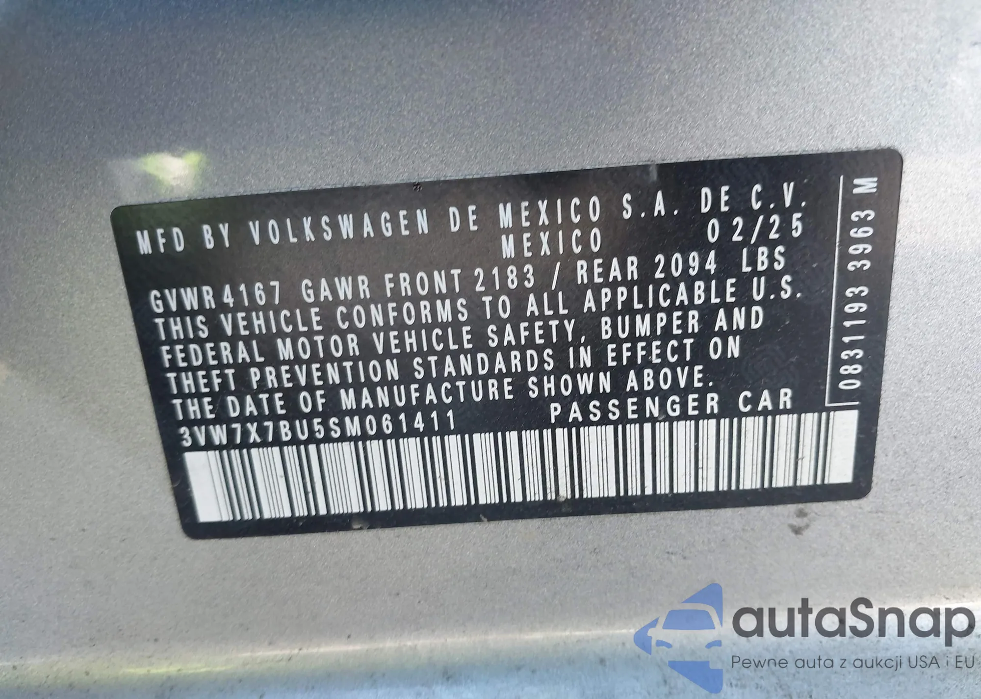 LOT: 43465130 VIN: WD0PF145485240053