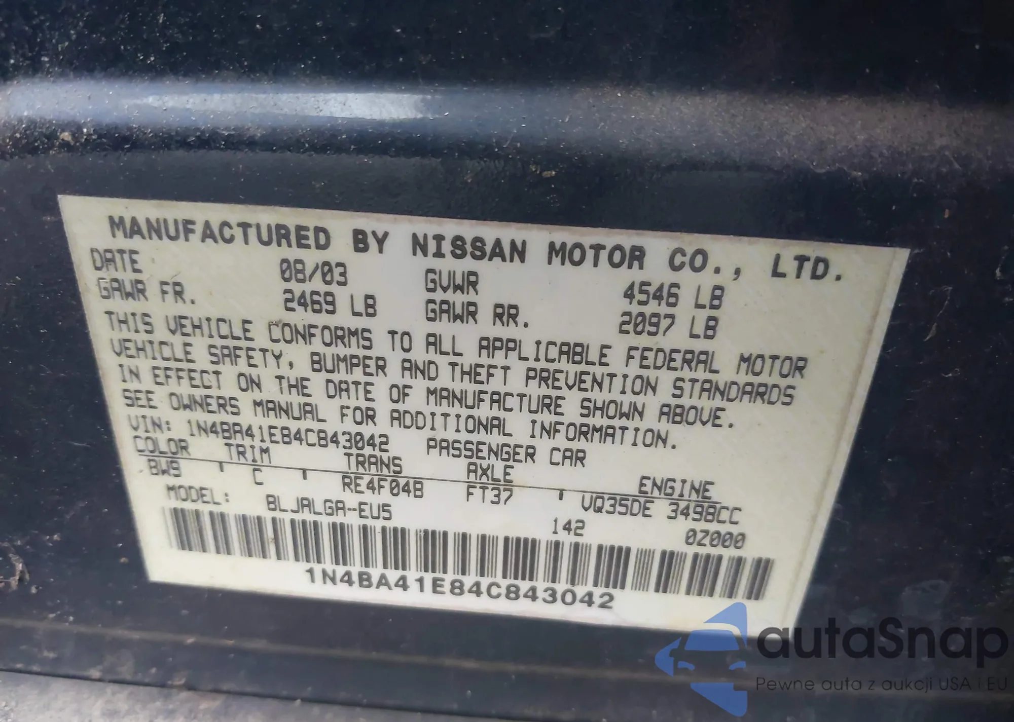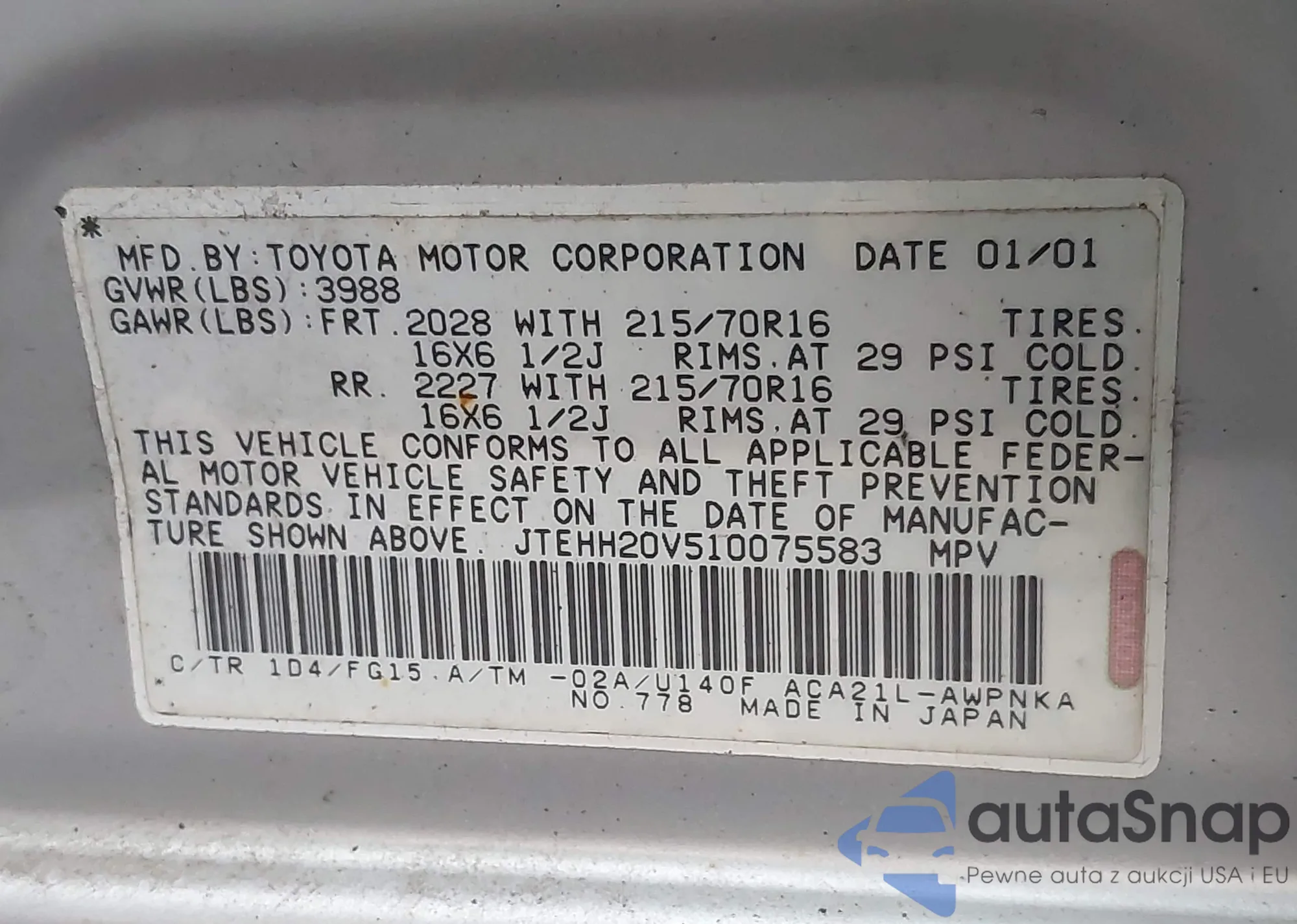 LOT: 43831630 VIN: 4T1BK36B36U150081