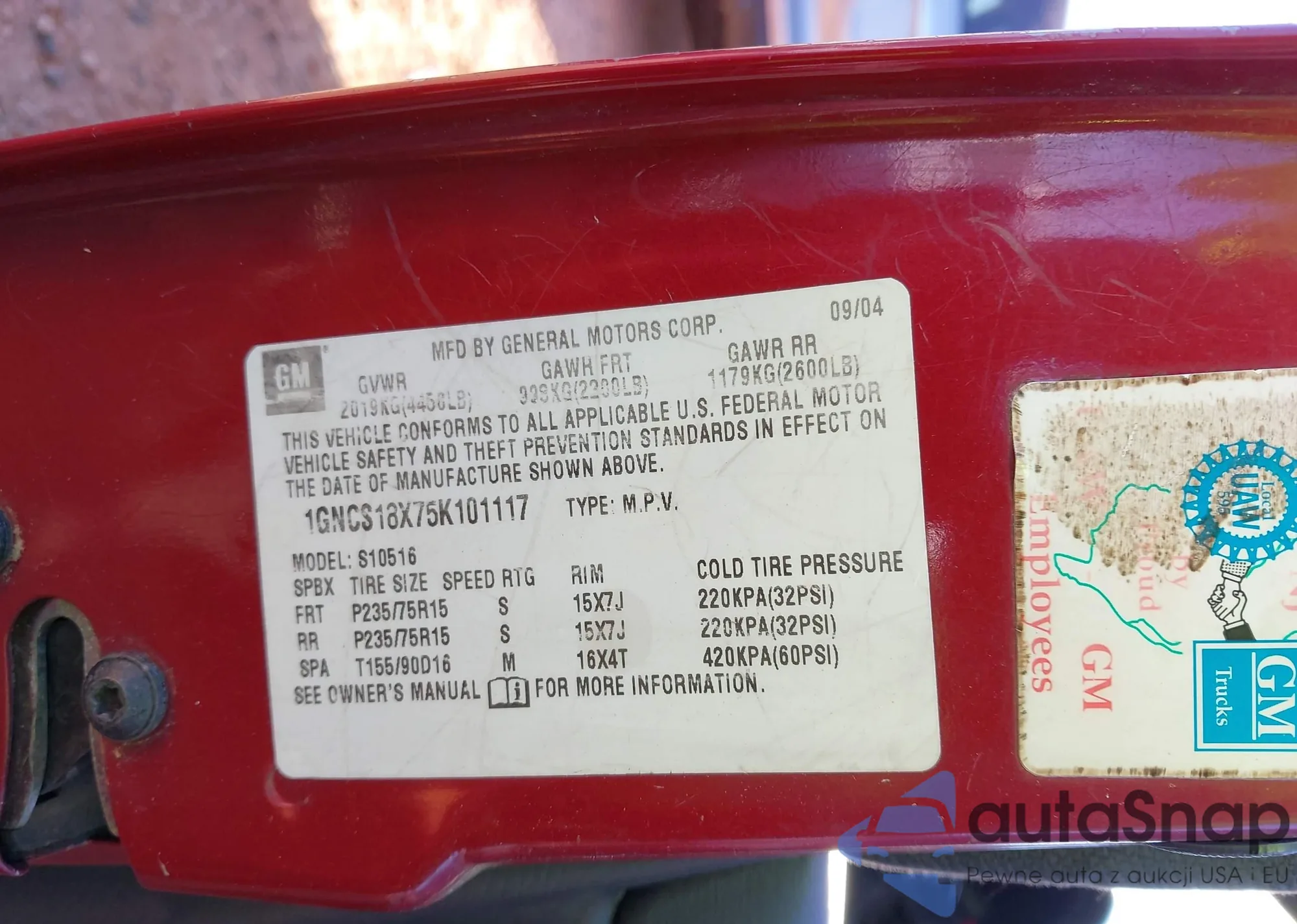 LOT: 43747330 VIN: 3GNFK16RXXG167494