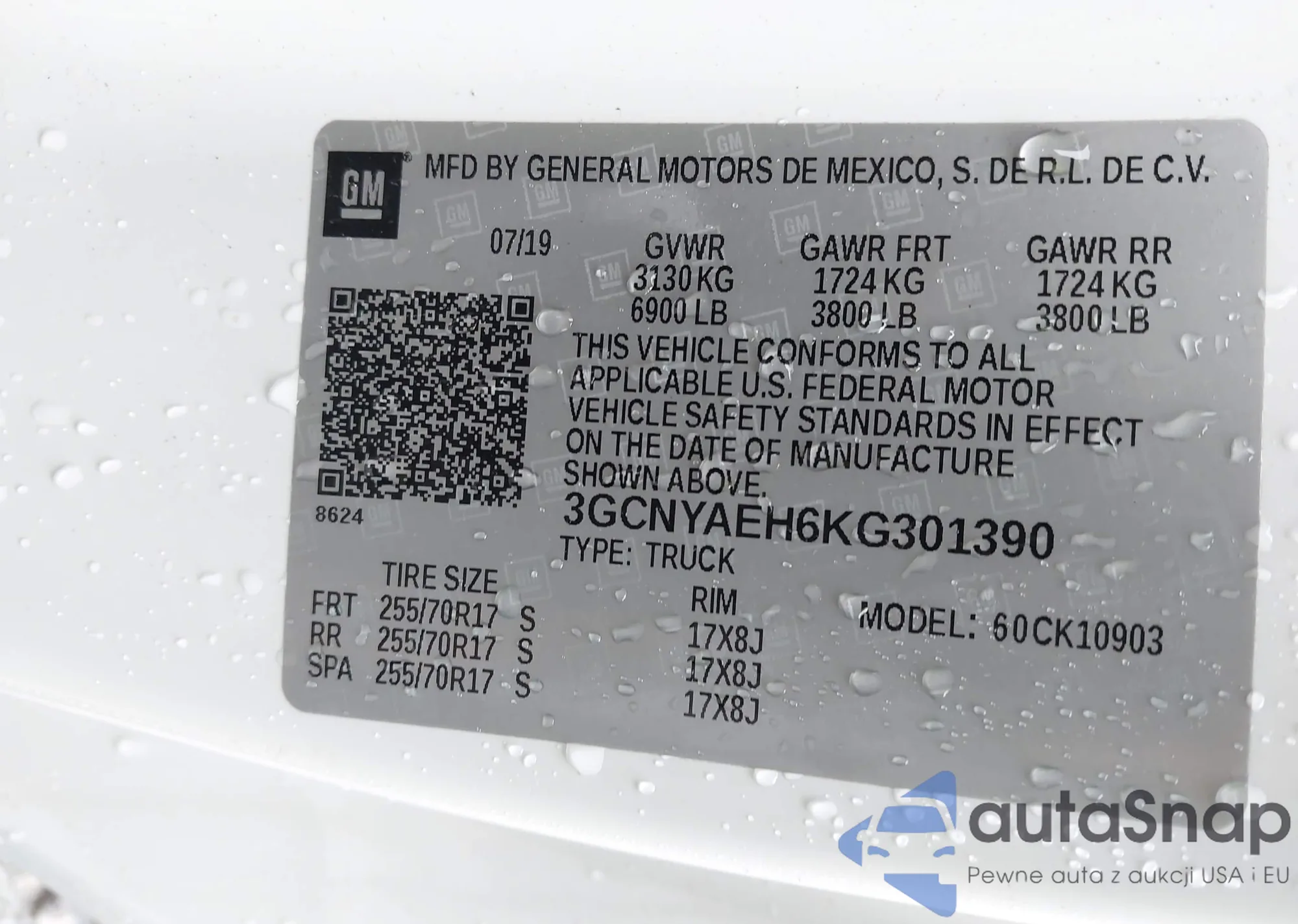 • VIN 3GCNYAEH6KG301390