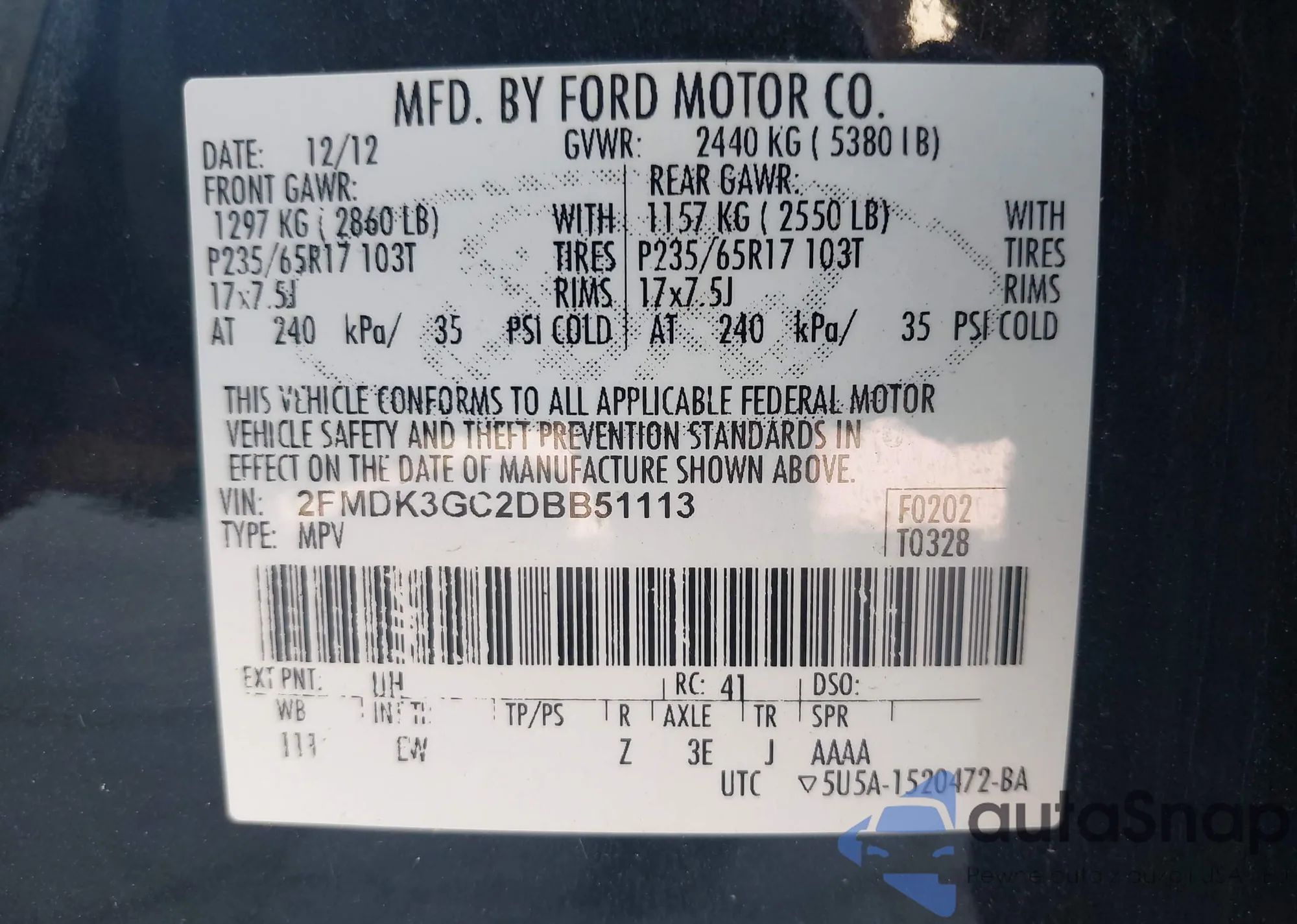 LOT: 43635576 VIN: 5UXKR0C50F0P02588