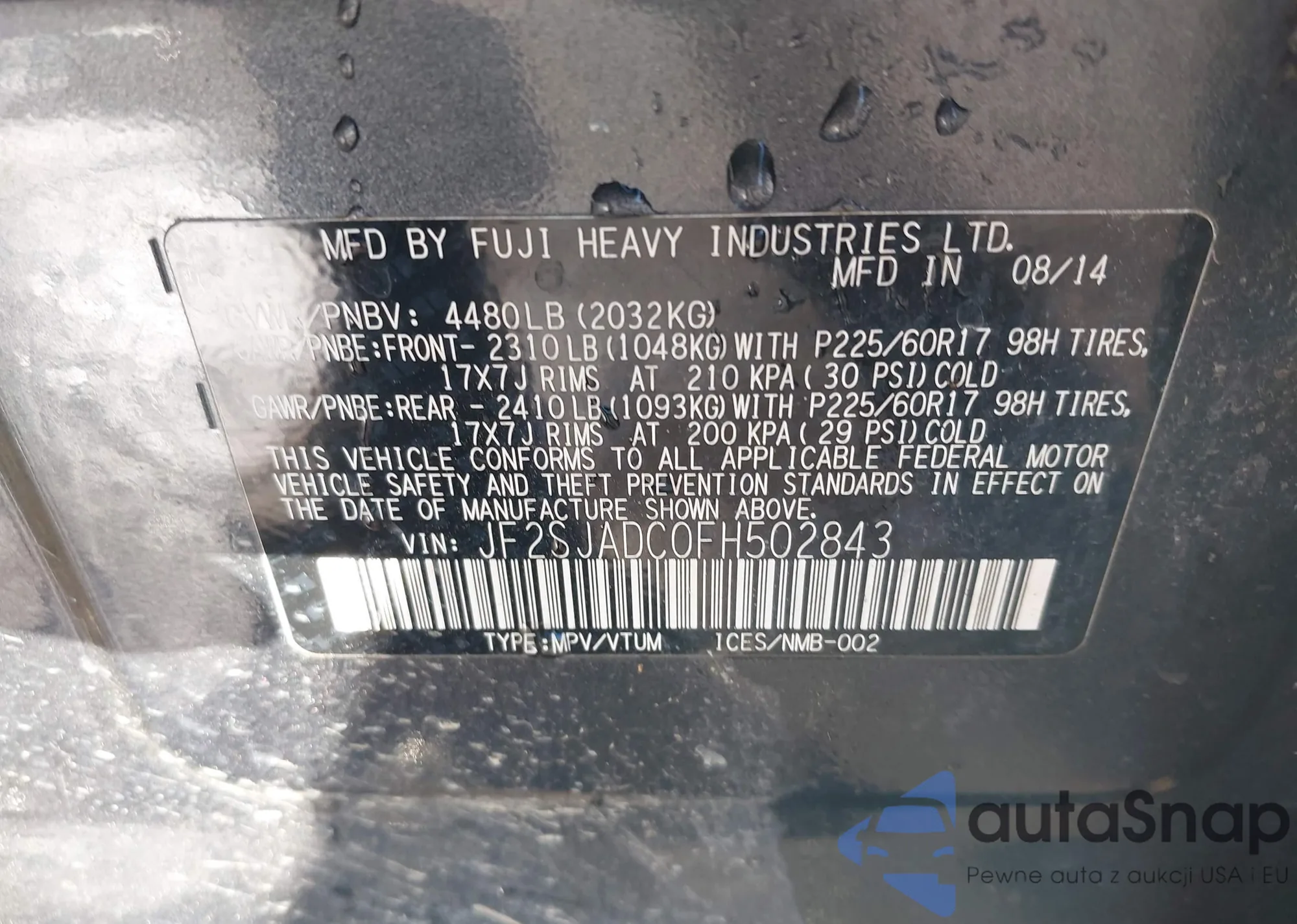 LOT: 43793017 VIN: JF1GJAA68FH007511