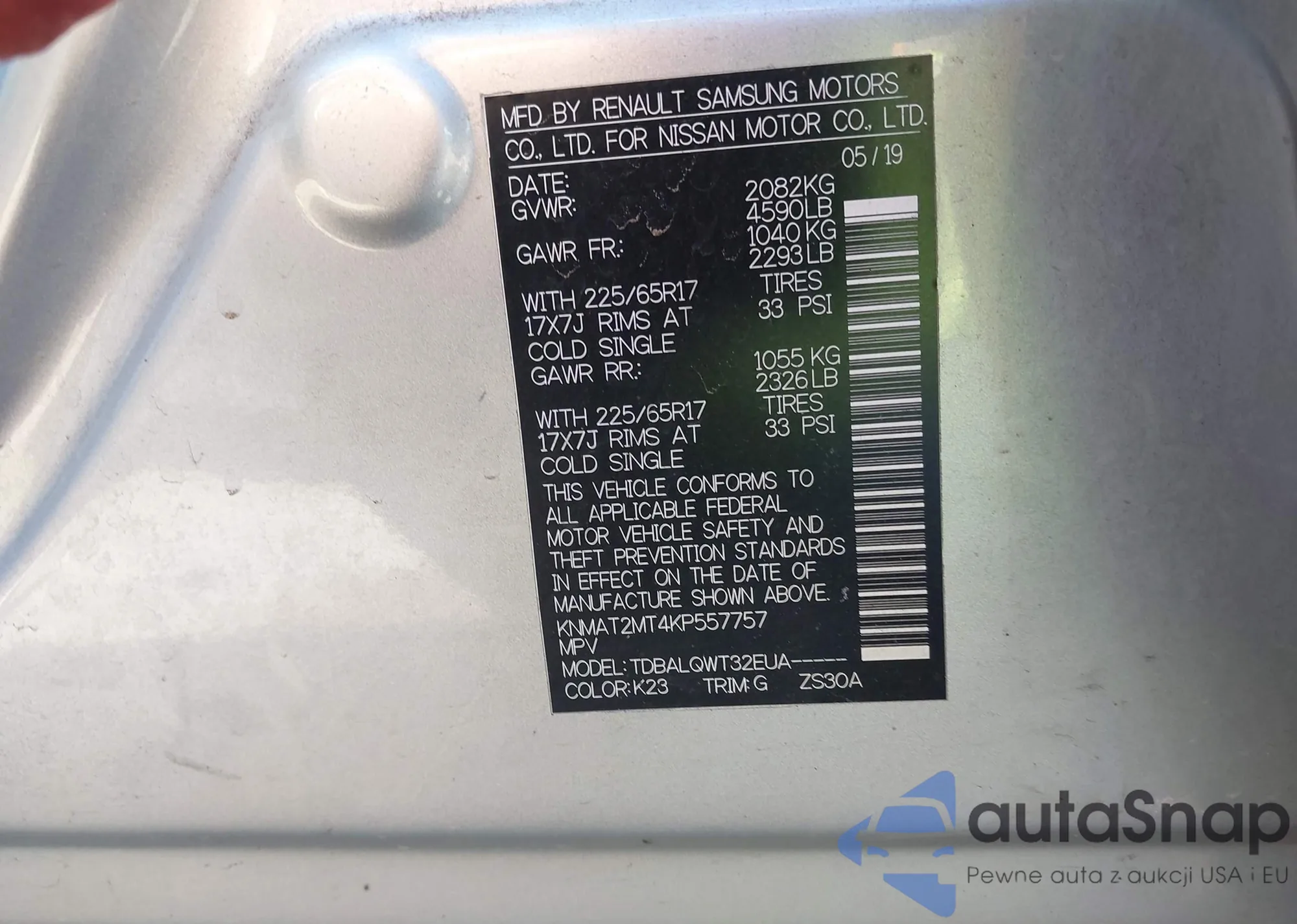 LOT: 43401100 VIN: JN8AS5MV7CW354587