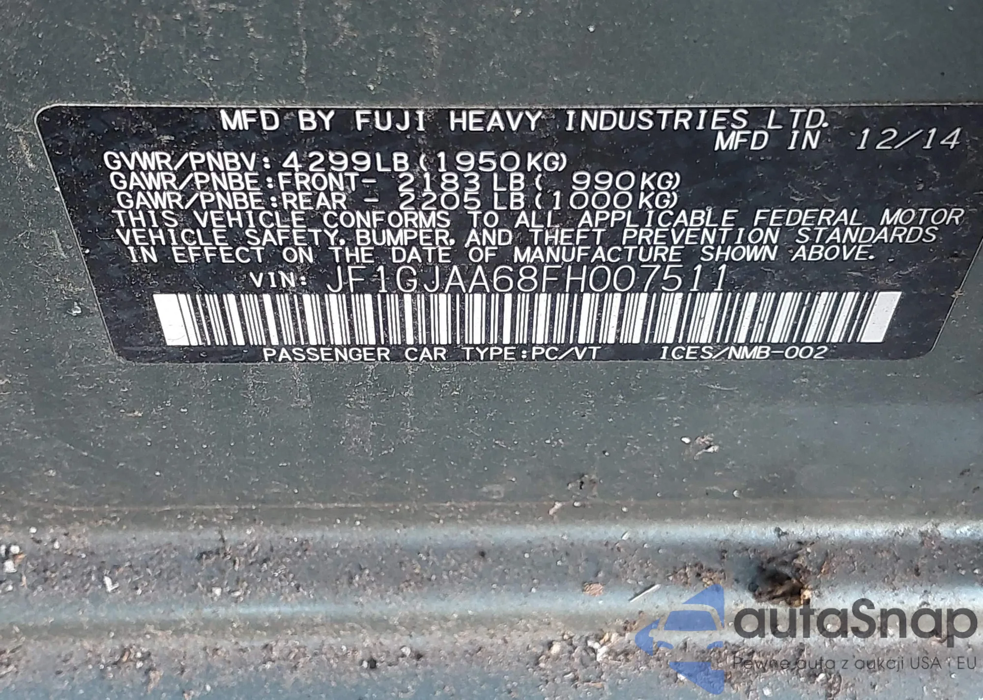 • VIN JF1GJAA68FH007511