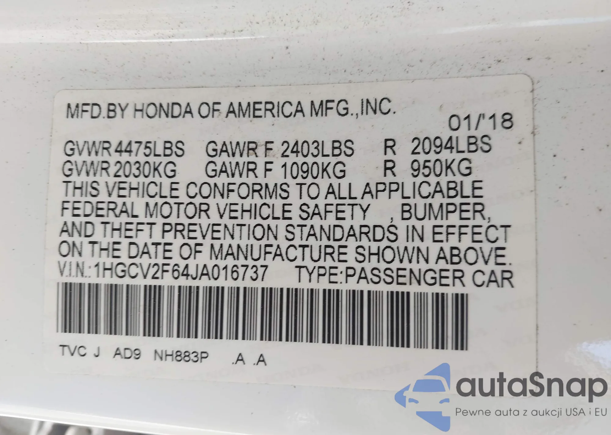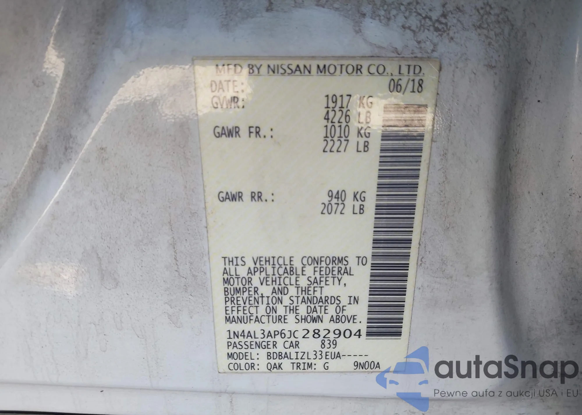 LOT: 43789258 VIN: 1N4AL3AP6JC282904