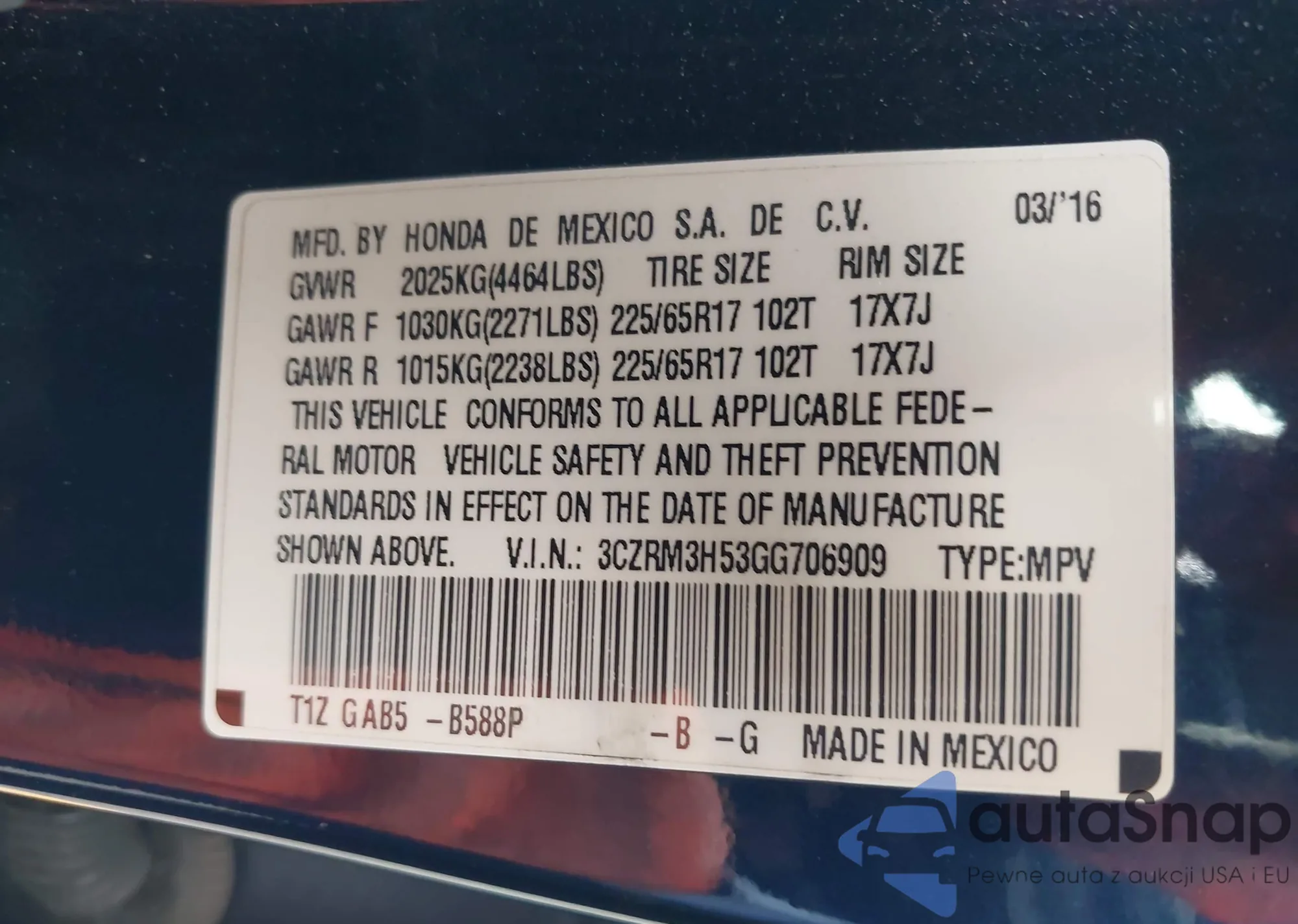 • VIN 3CZRM3H53GG706909