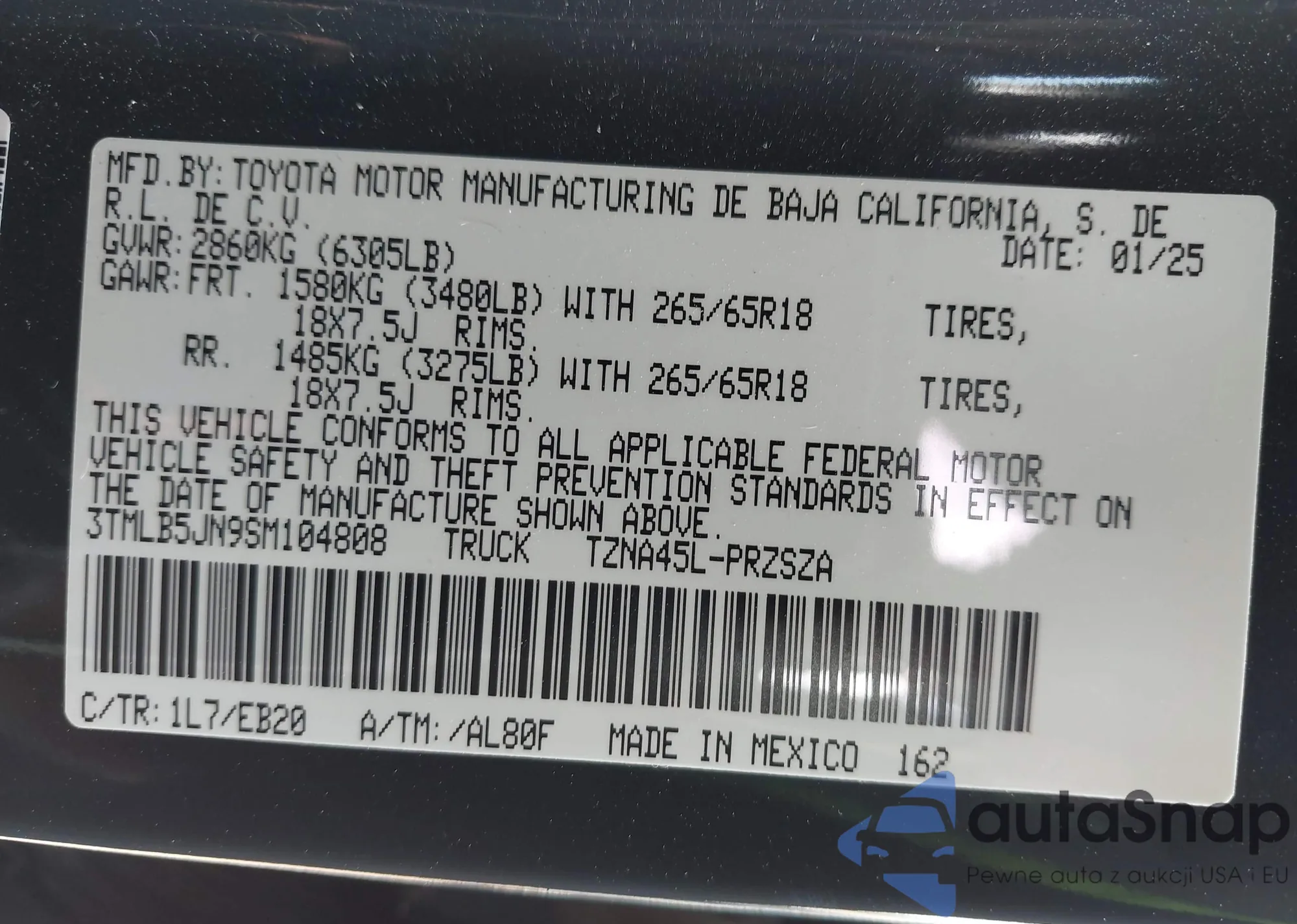 • VIN 3TMLB5JN9SM104808