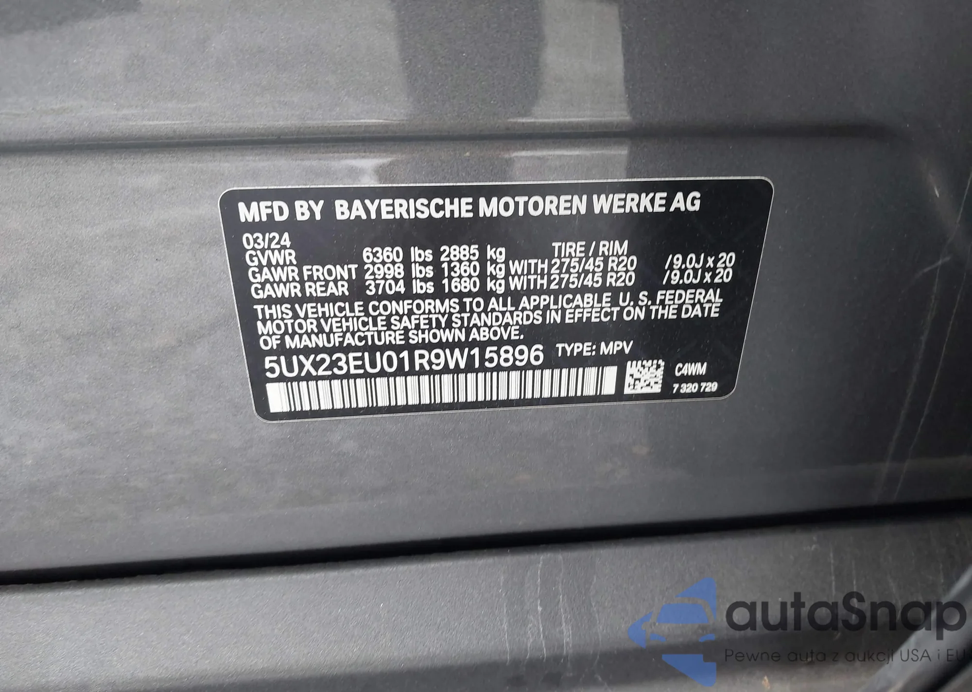 • VIN 5UX23EU01R9W15896