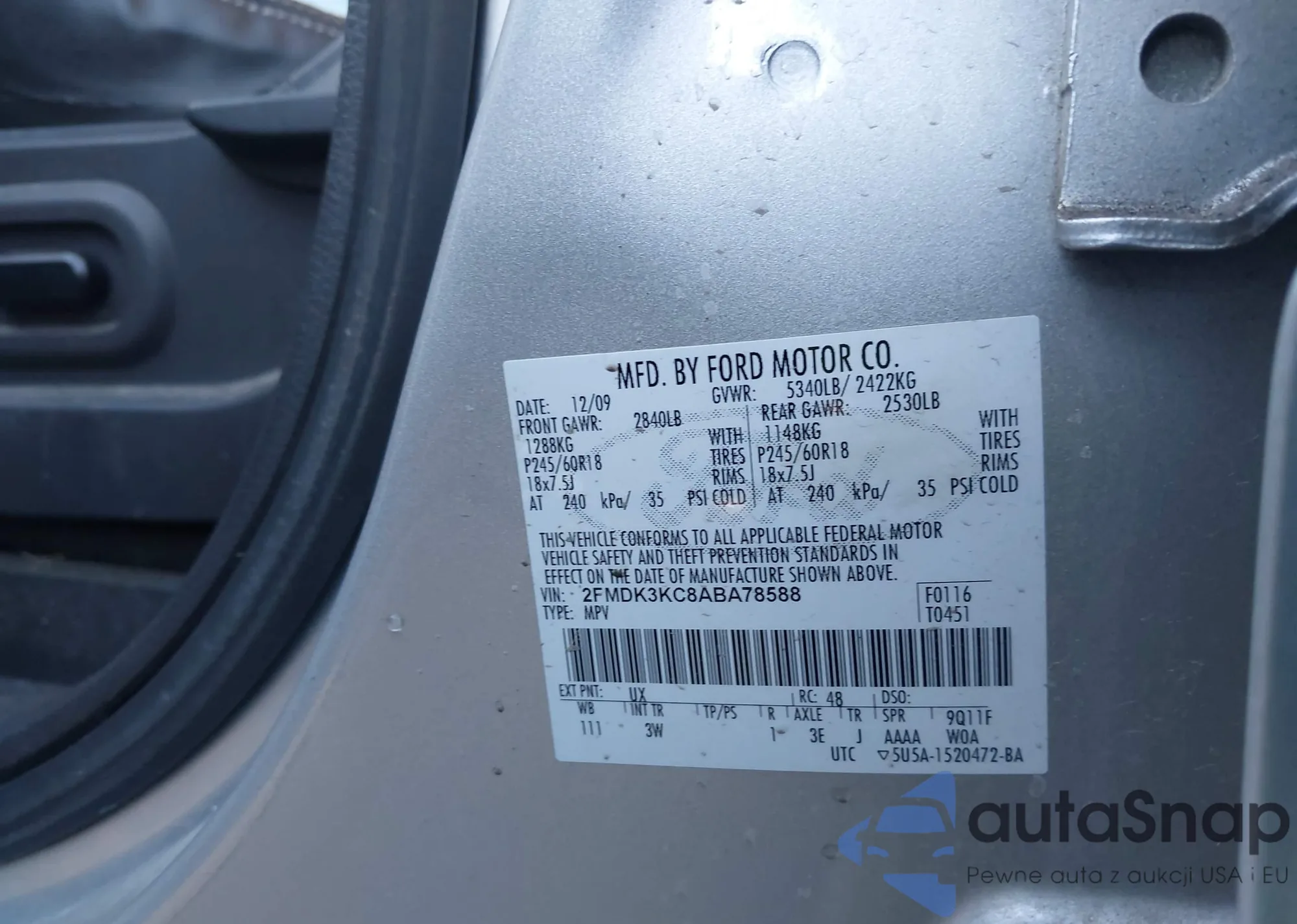 LOT: 43384419 VIN: 5UX23EU01R9W15896