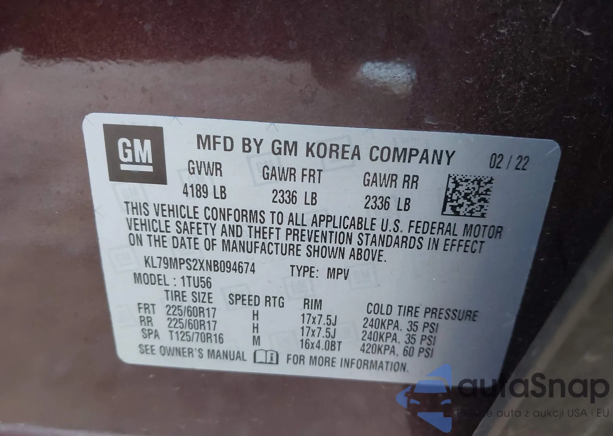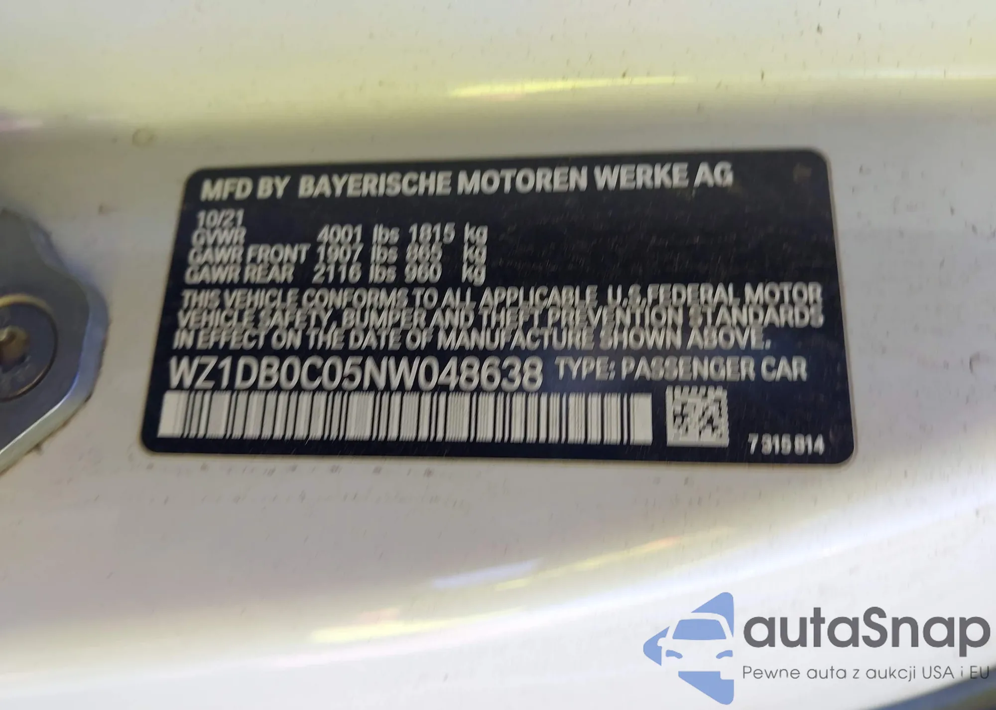 LOT: 43431332 VIN: WBS83FK0XSCT42172
