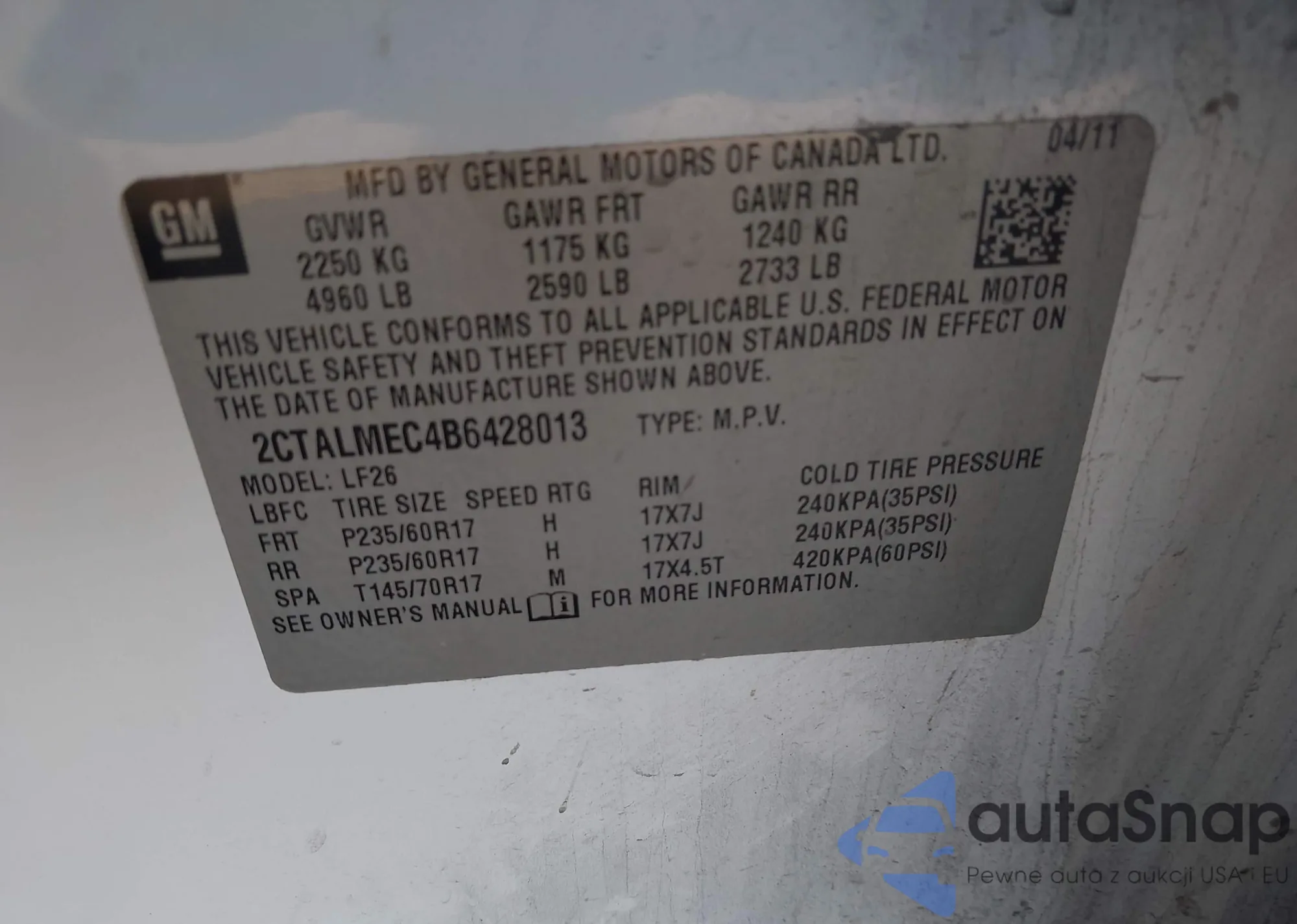 • VIN 2CTALMEC4B6428013