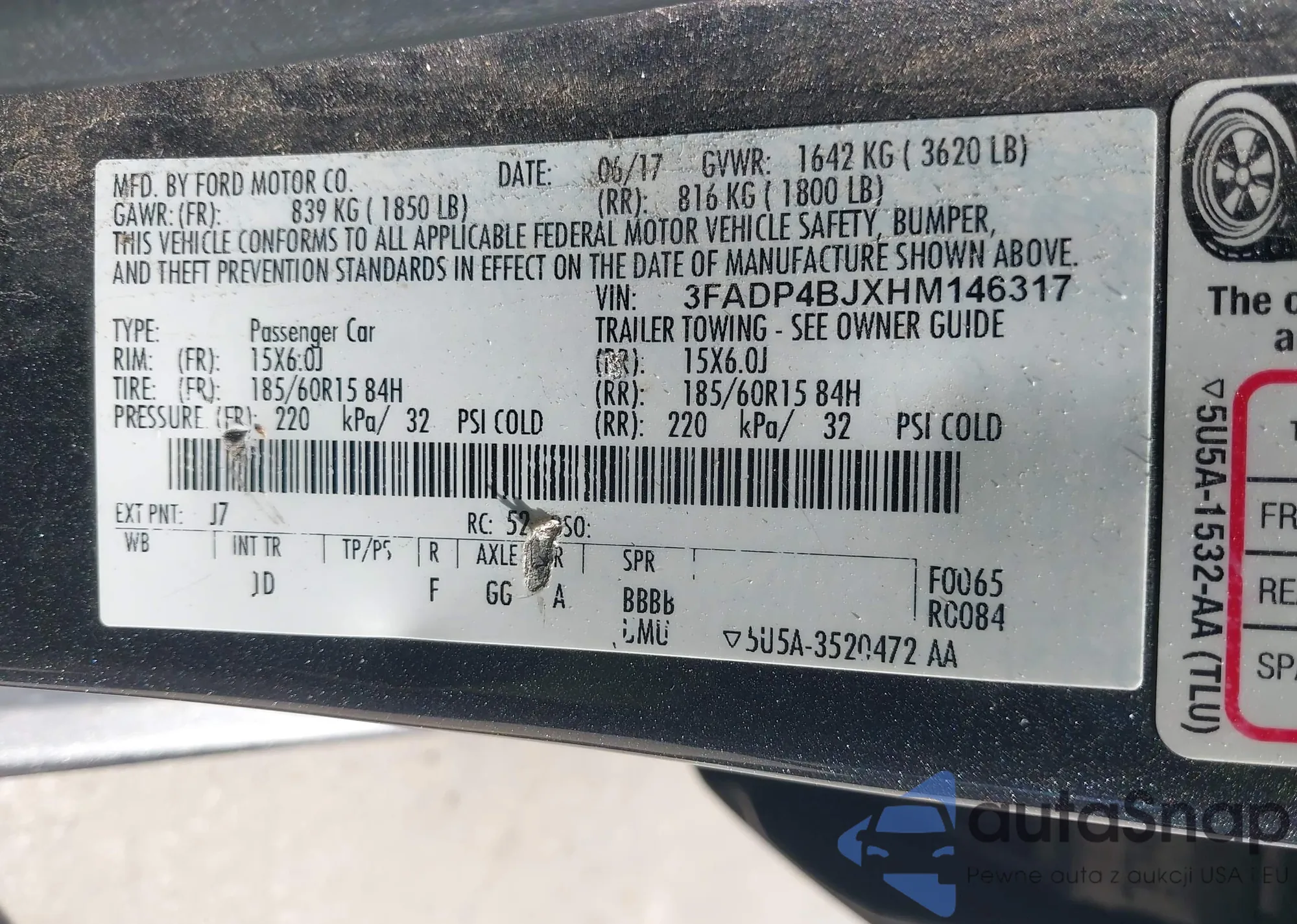 LOT: 43552558 VIN: 3FADP4BJXHM146317