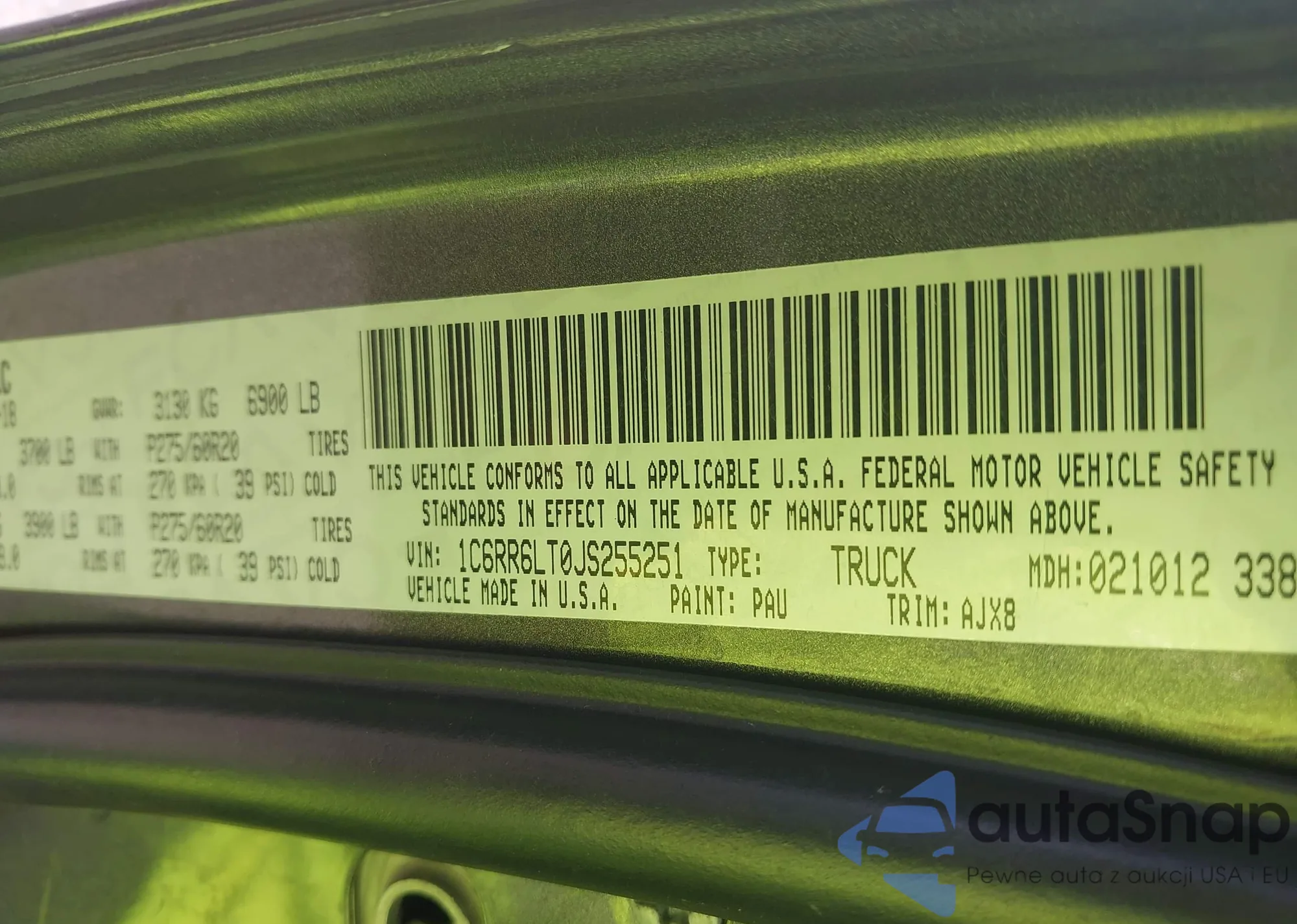 • VIN 5J6RW2H56MA011628
