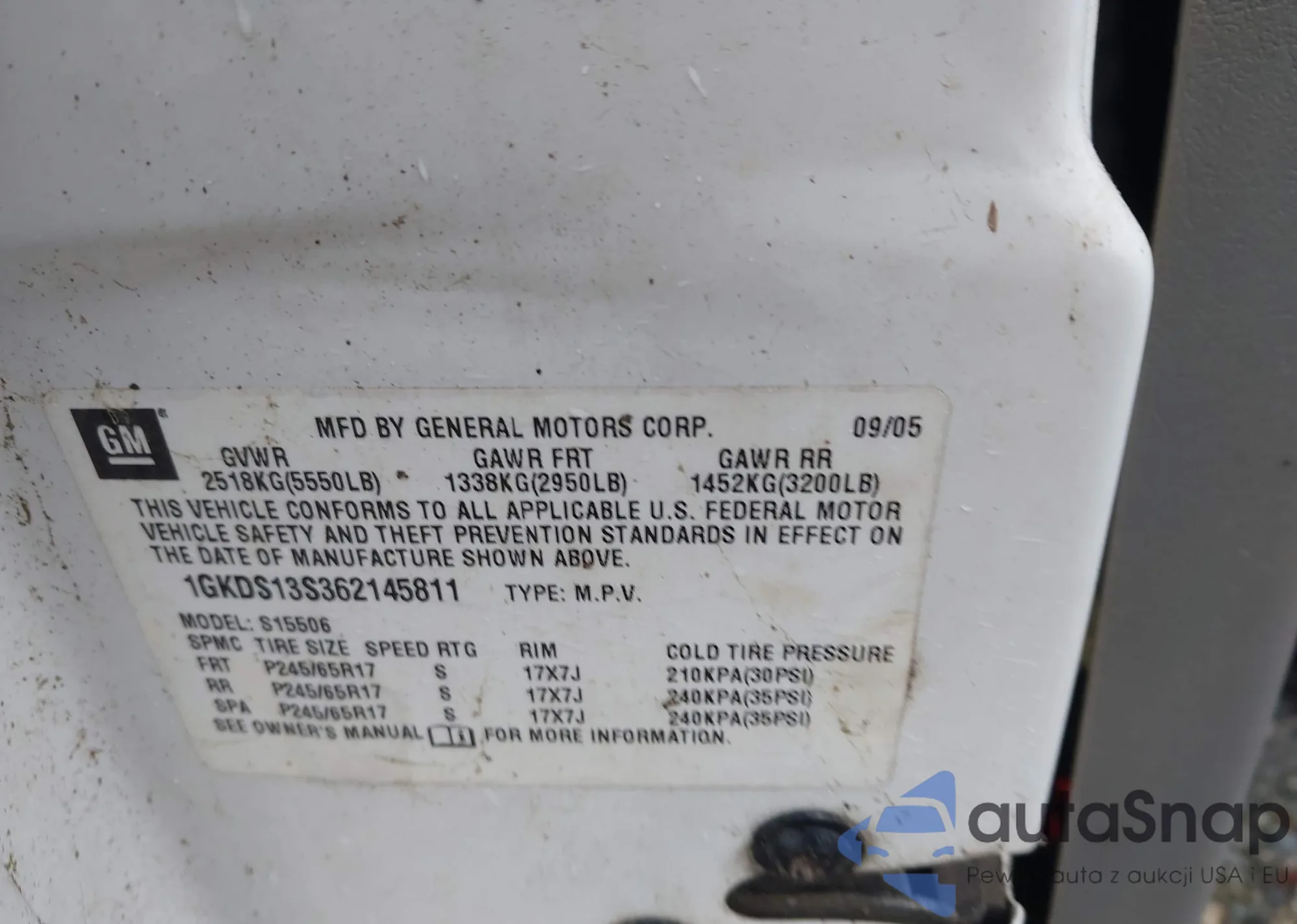 LOT: 43540556 VIN: 1GKDS13S362145811