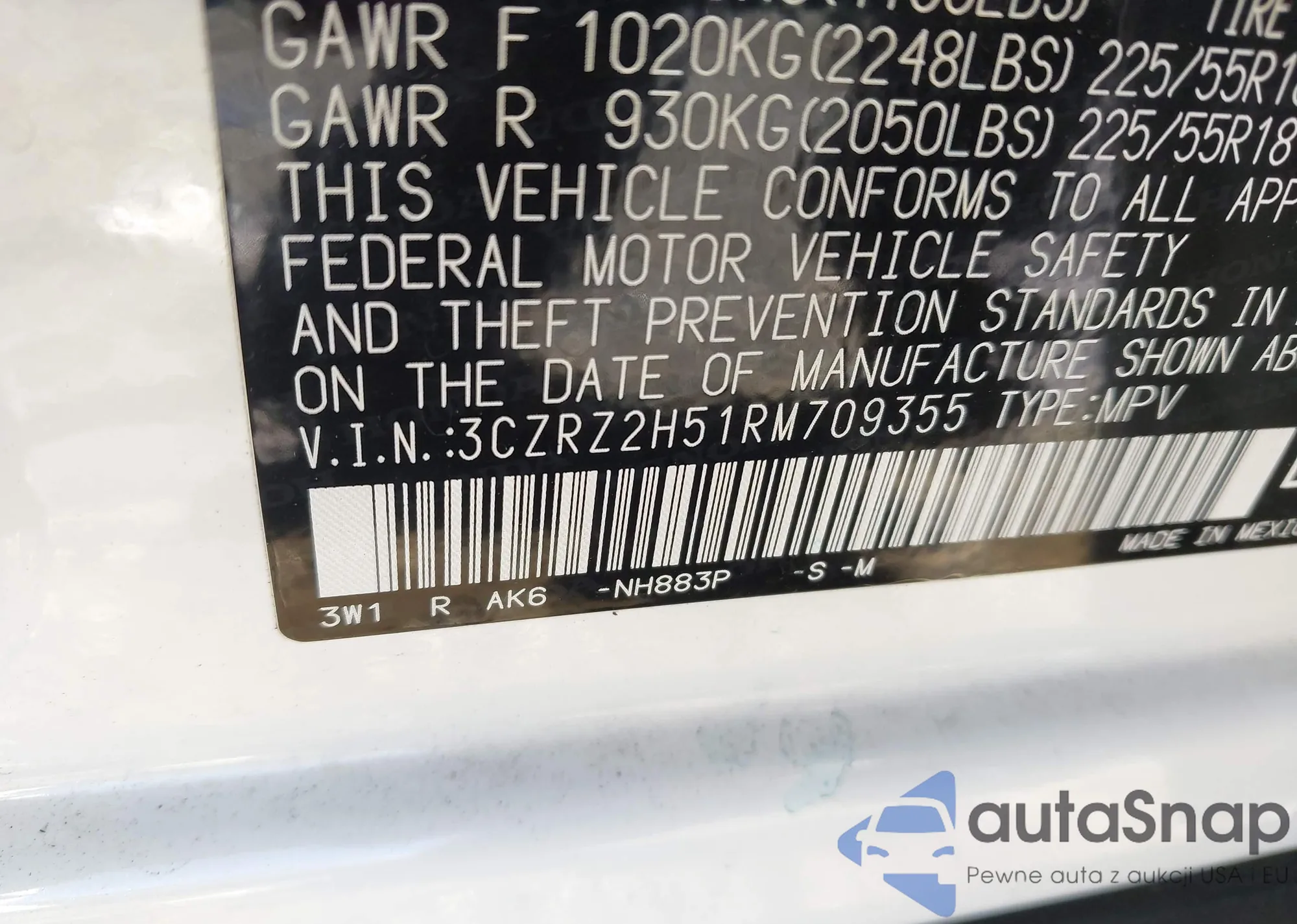 • VIN 3CZRZ2H51RM709355