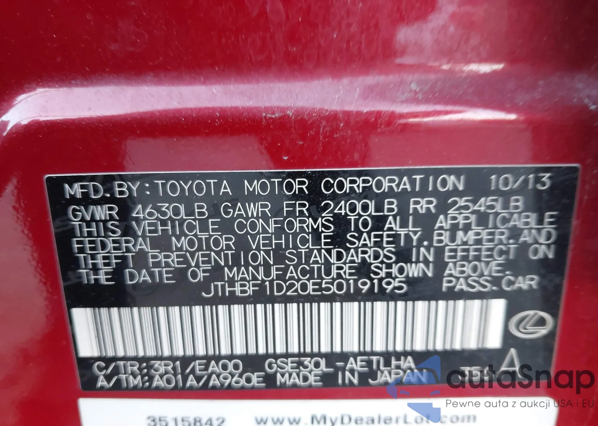 • Lot number 42490008