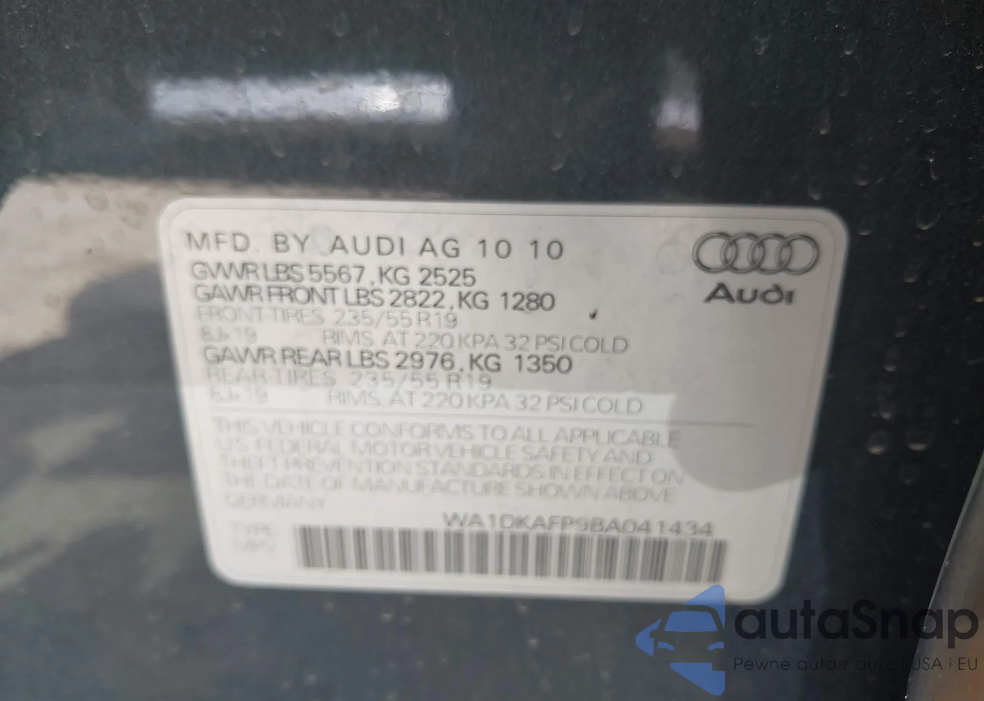 • VIN WA1DKAFP9BA041434