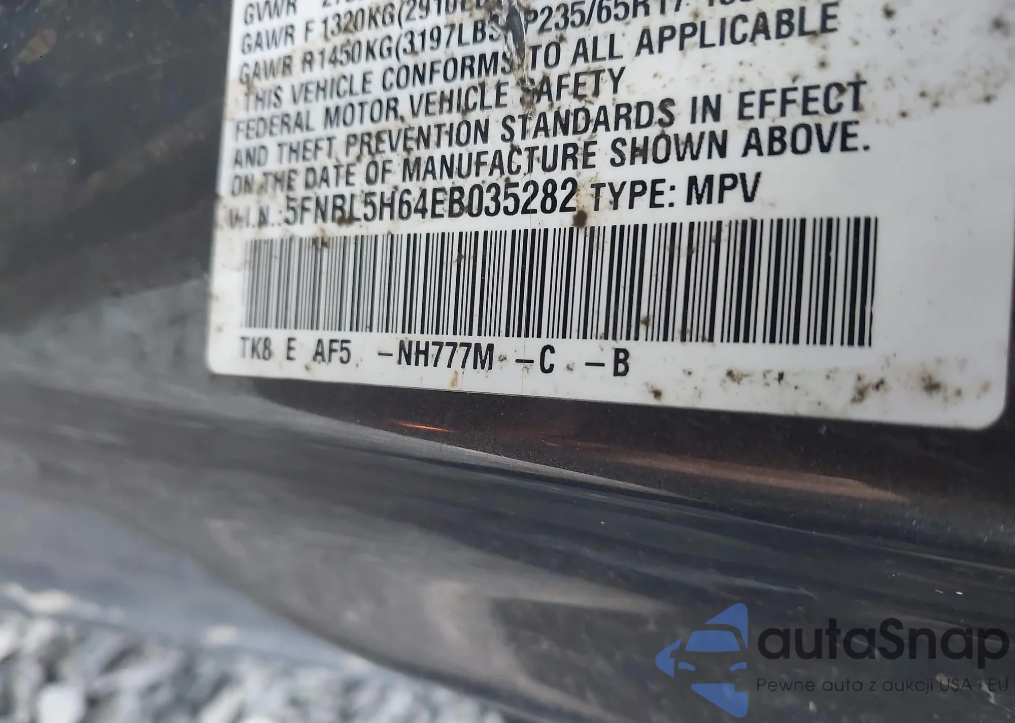 LOT: 43565475 VIN: KNDPU3AF6P7130812
