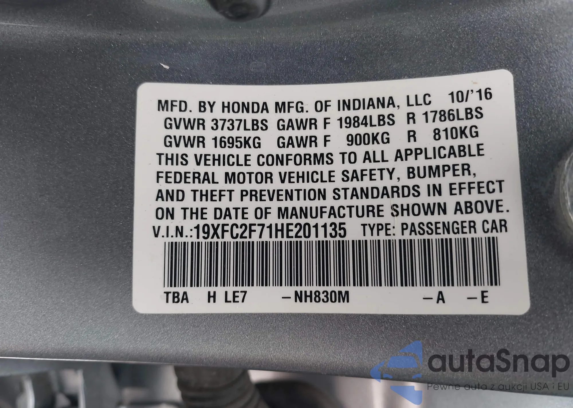 • VIN 1N4AL3APXGN317991