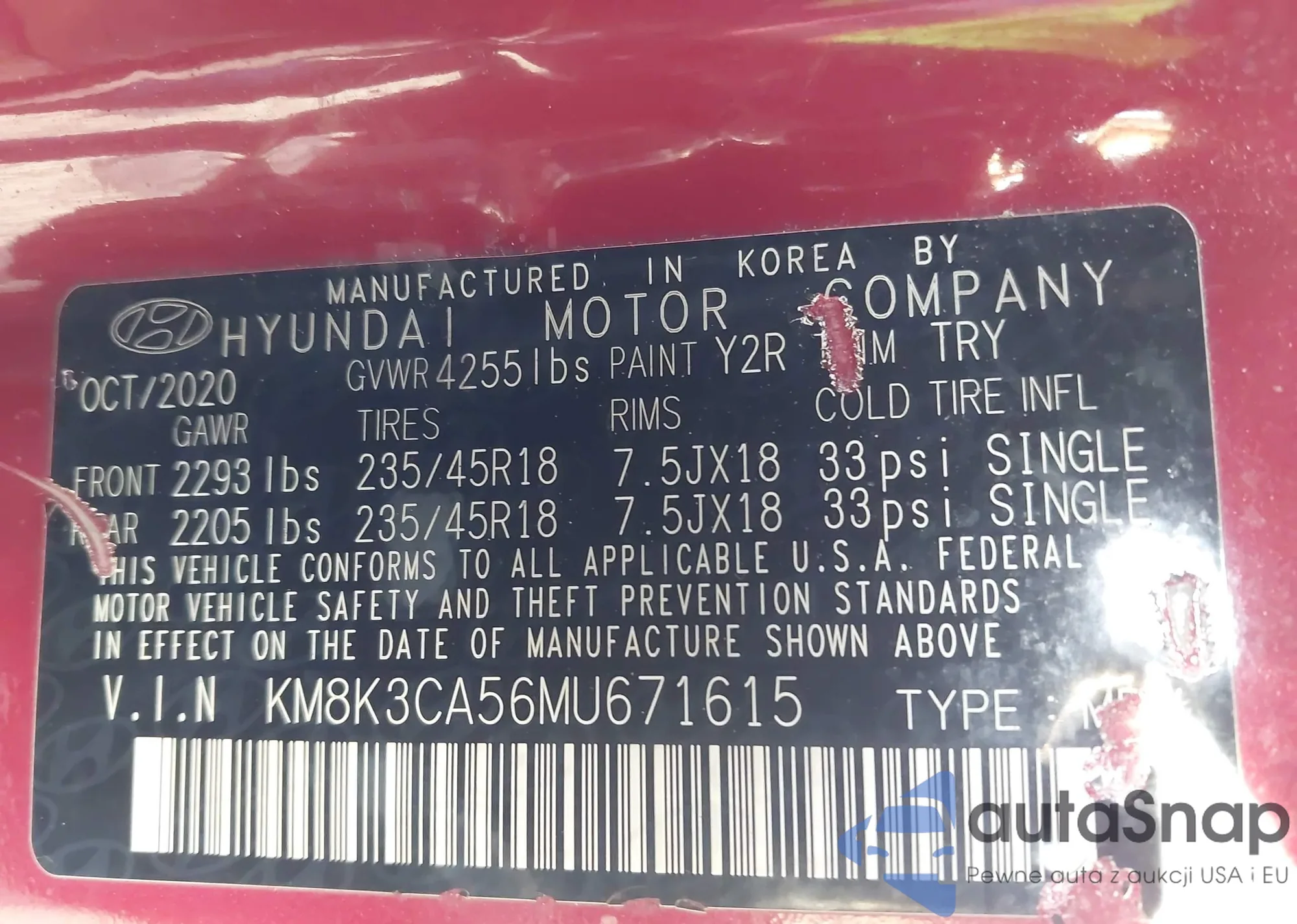 • VIN KM8K3CA56MU671615