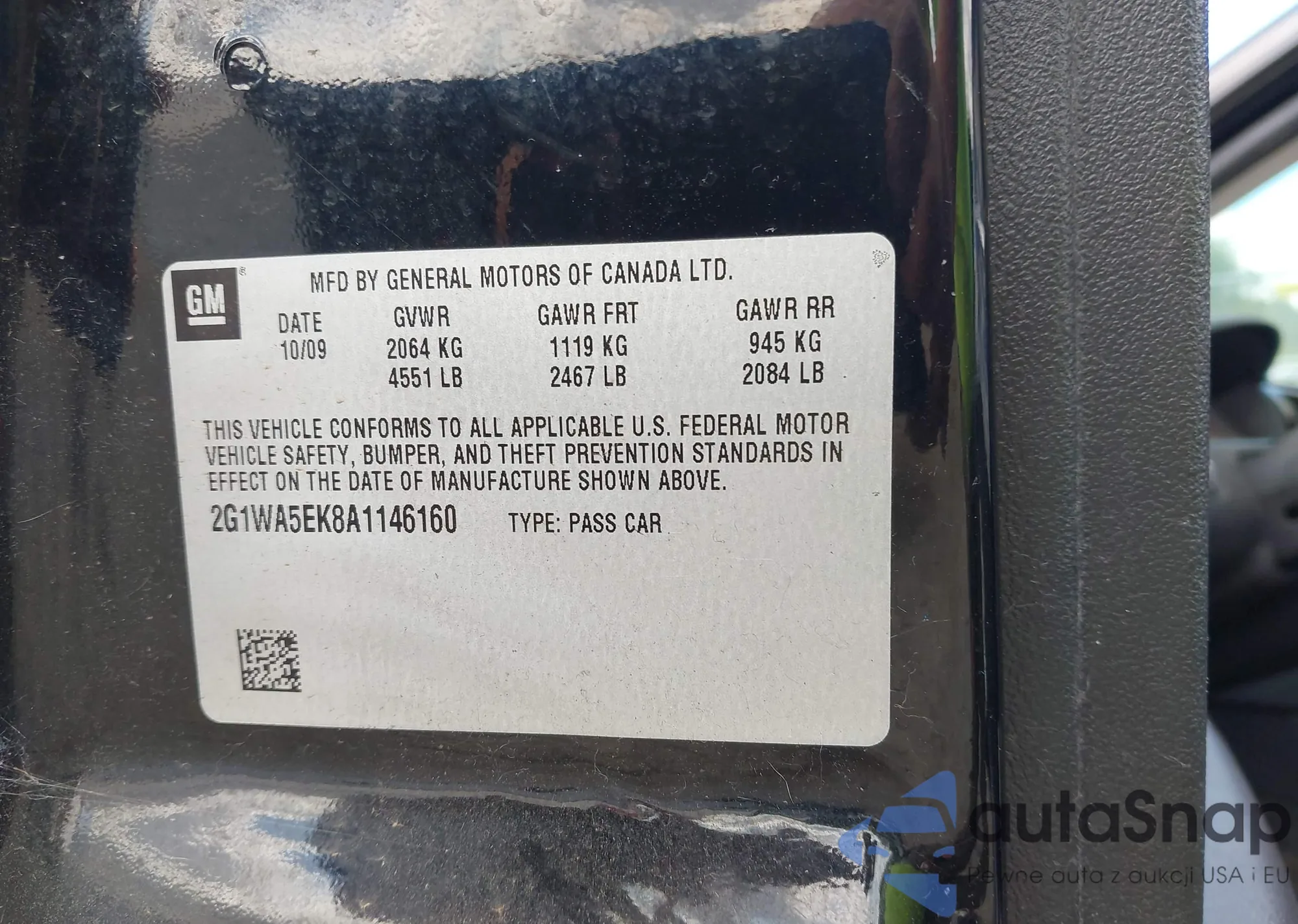 • VIN 2G1WA5EK8A1146160