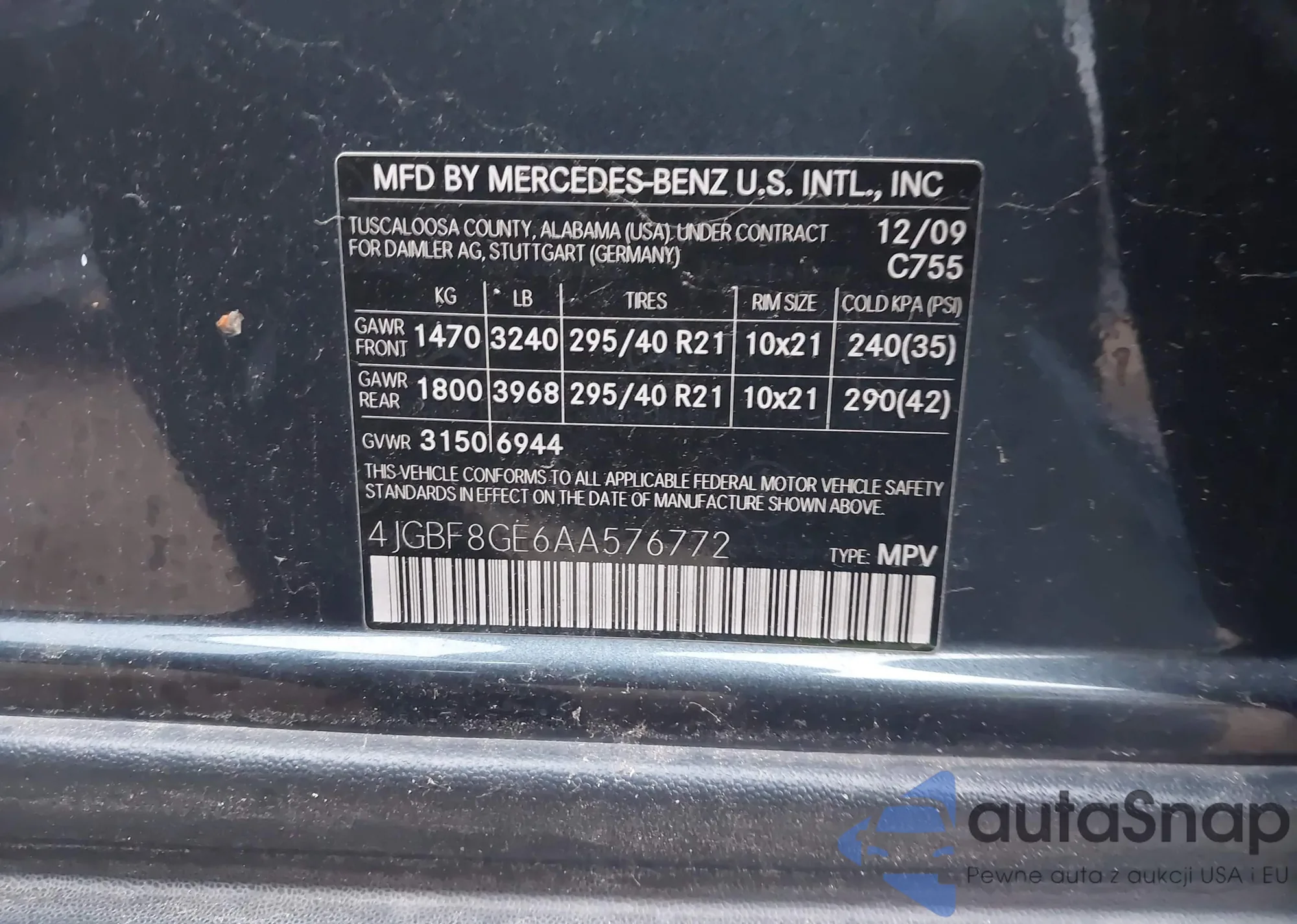 • VIN 4JGBF8GE6AA576772