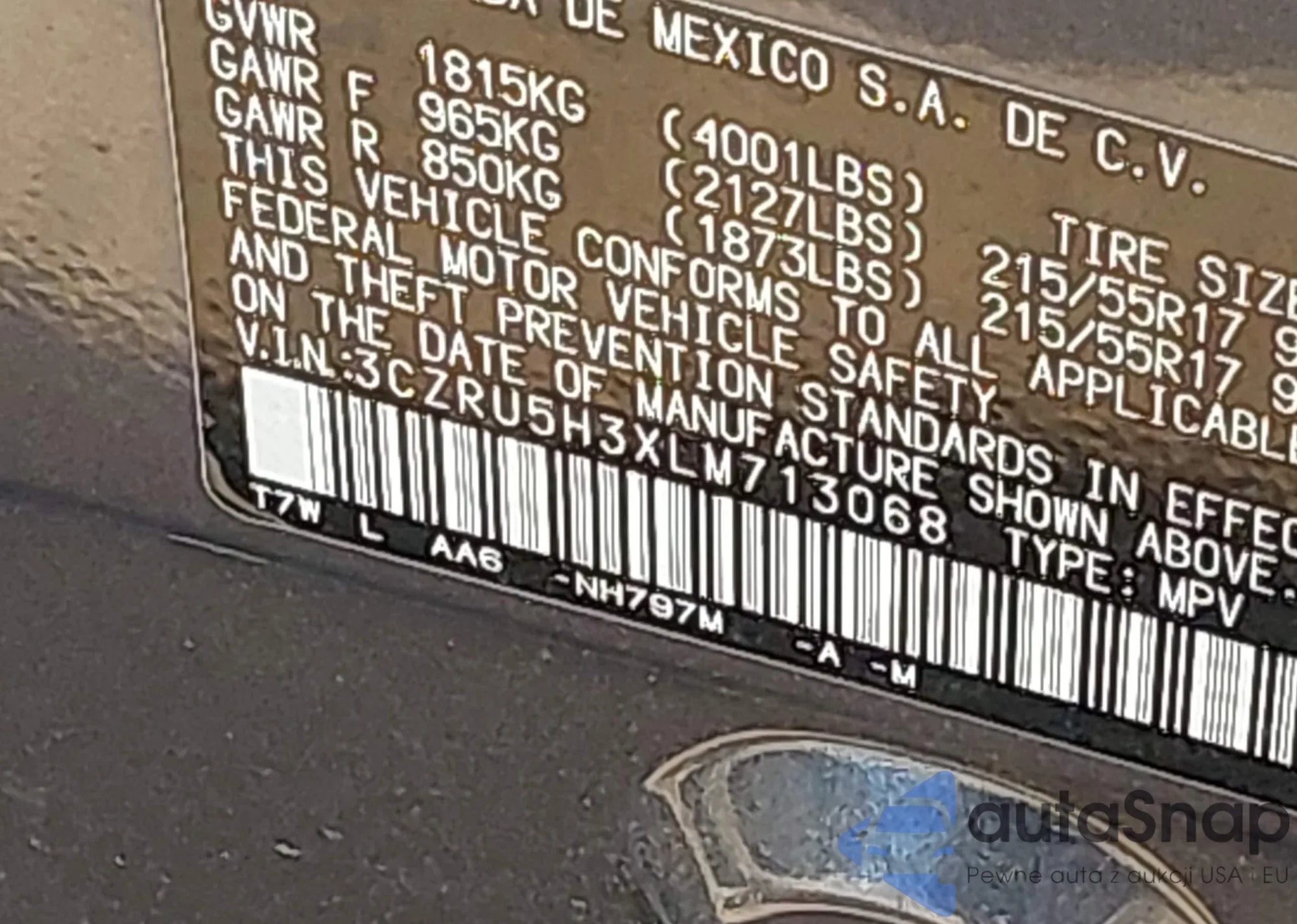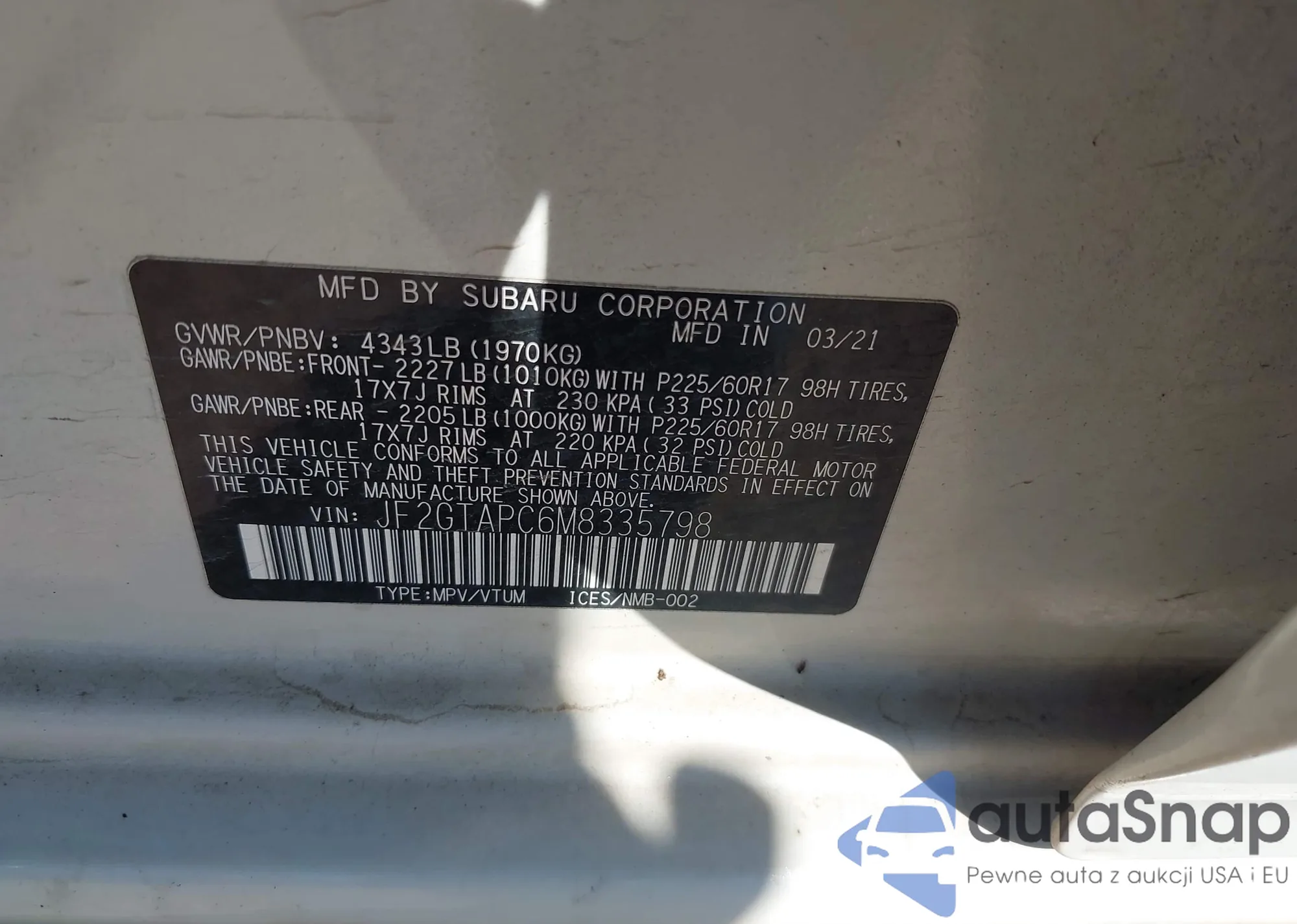 • VIN JF2GTAPC6M8335798