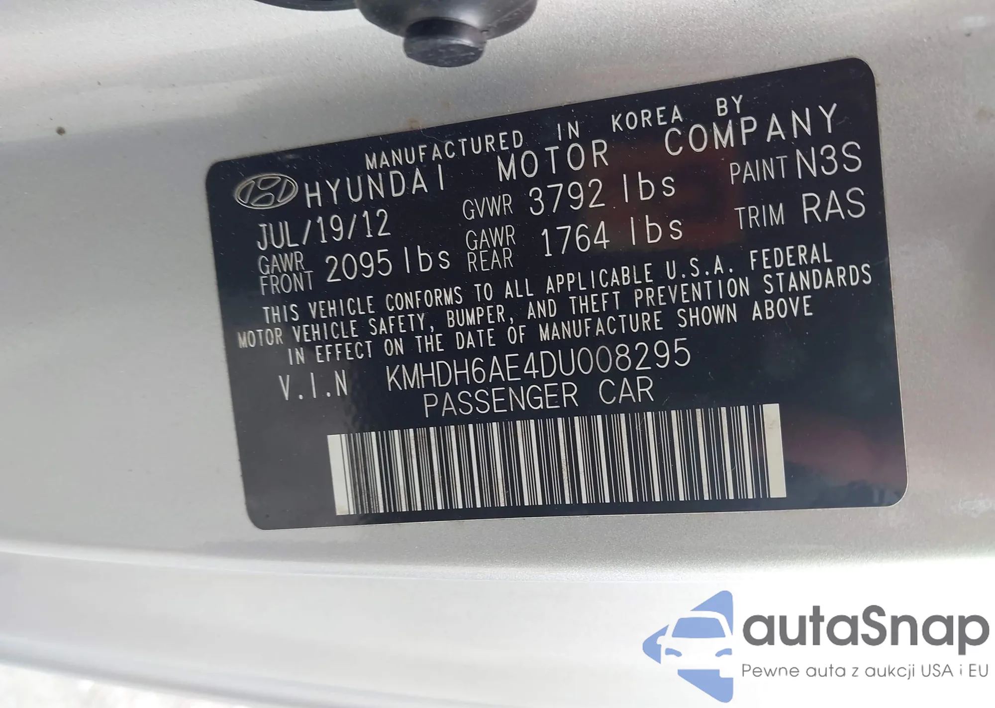 LOT: 43304162 VIN: KMHDH6AE4DU008295