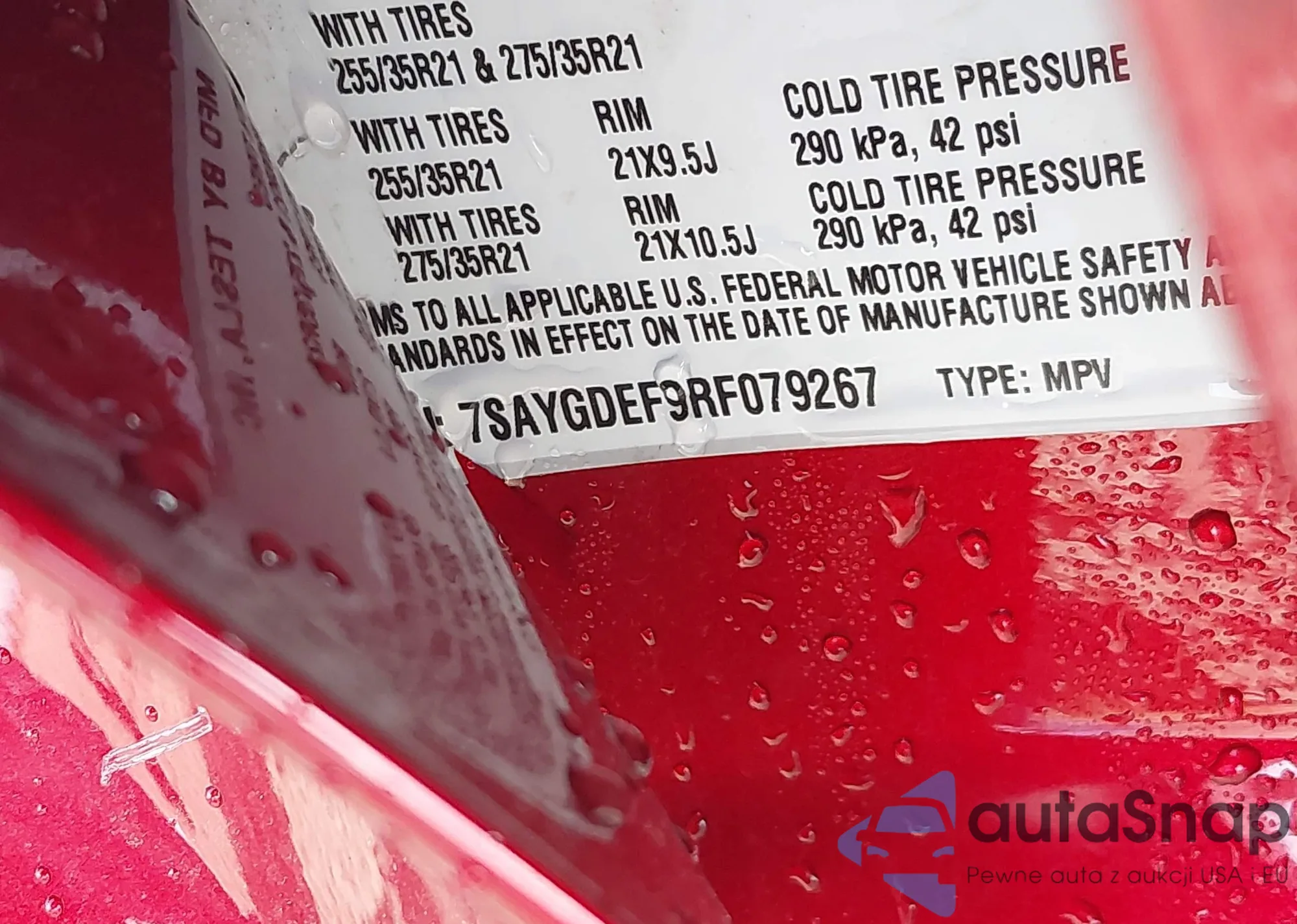 • VIN 7SAYGDEF9RF079267