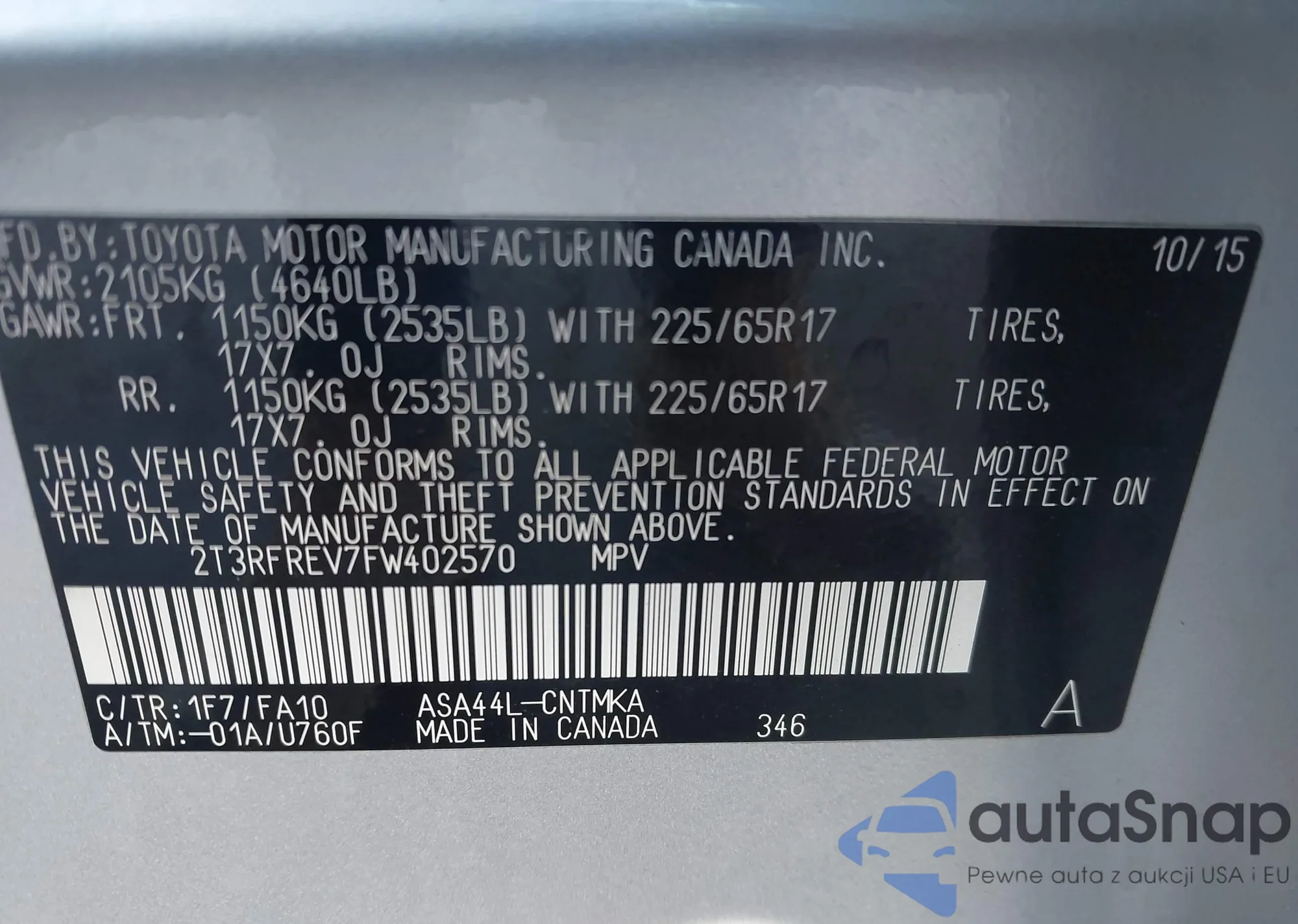 • VIN 2T3RFREV7FW402570