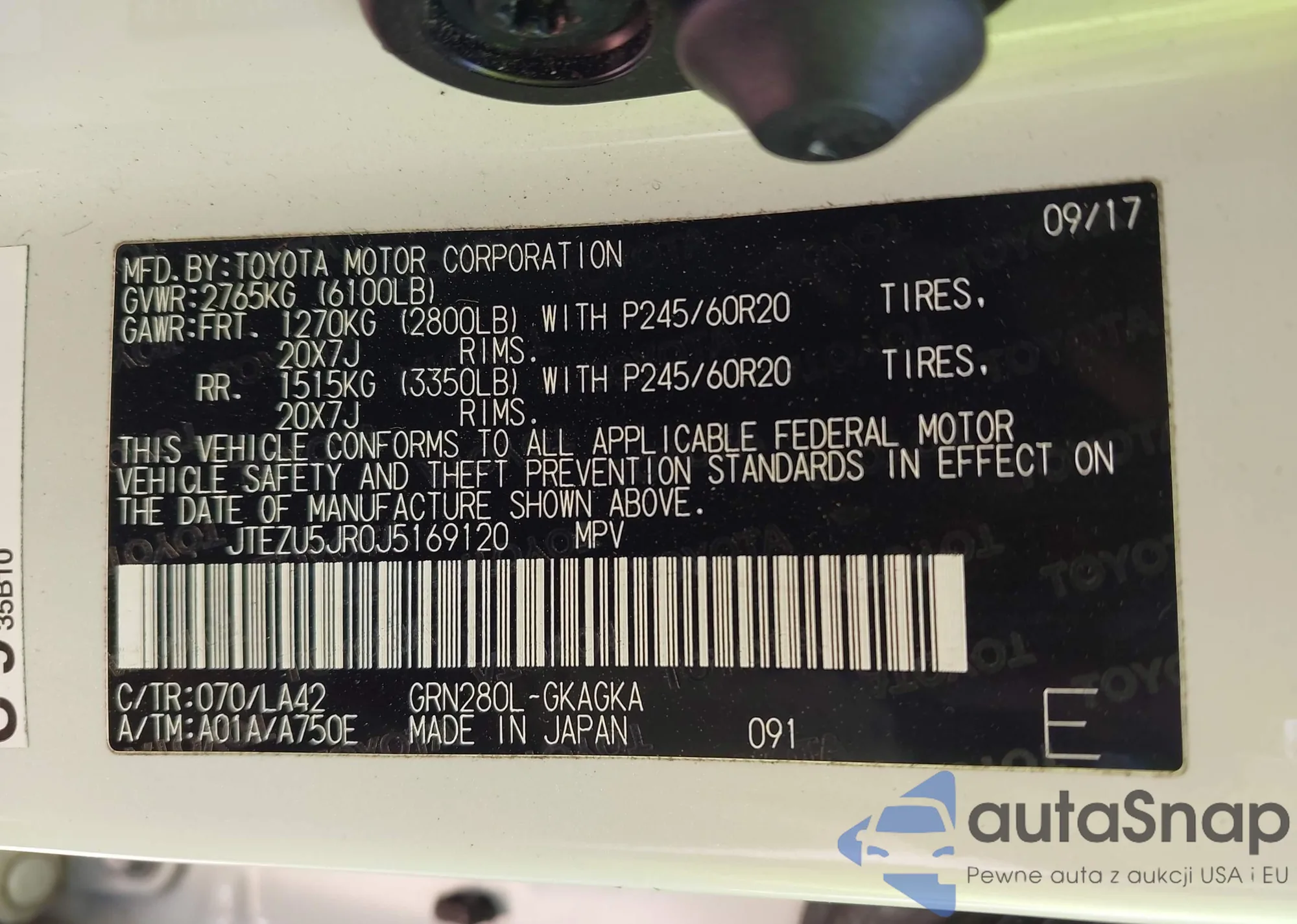 LOT: 43449099 VIN: JTEZU5JR0J5169120