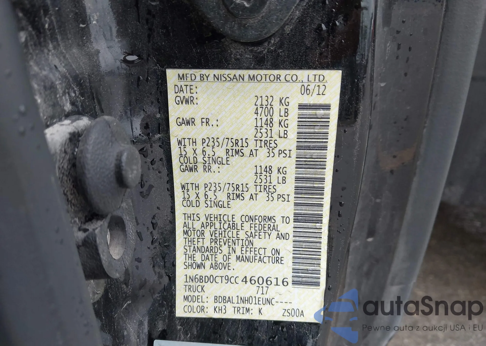 • VIN 1N6BD0CT9CC460616