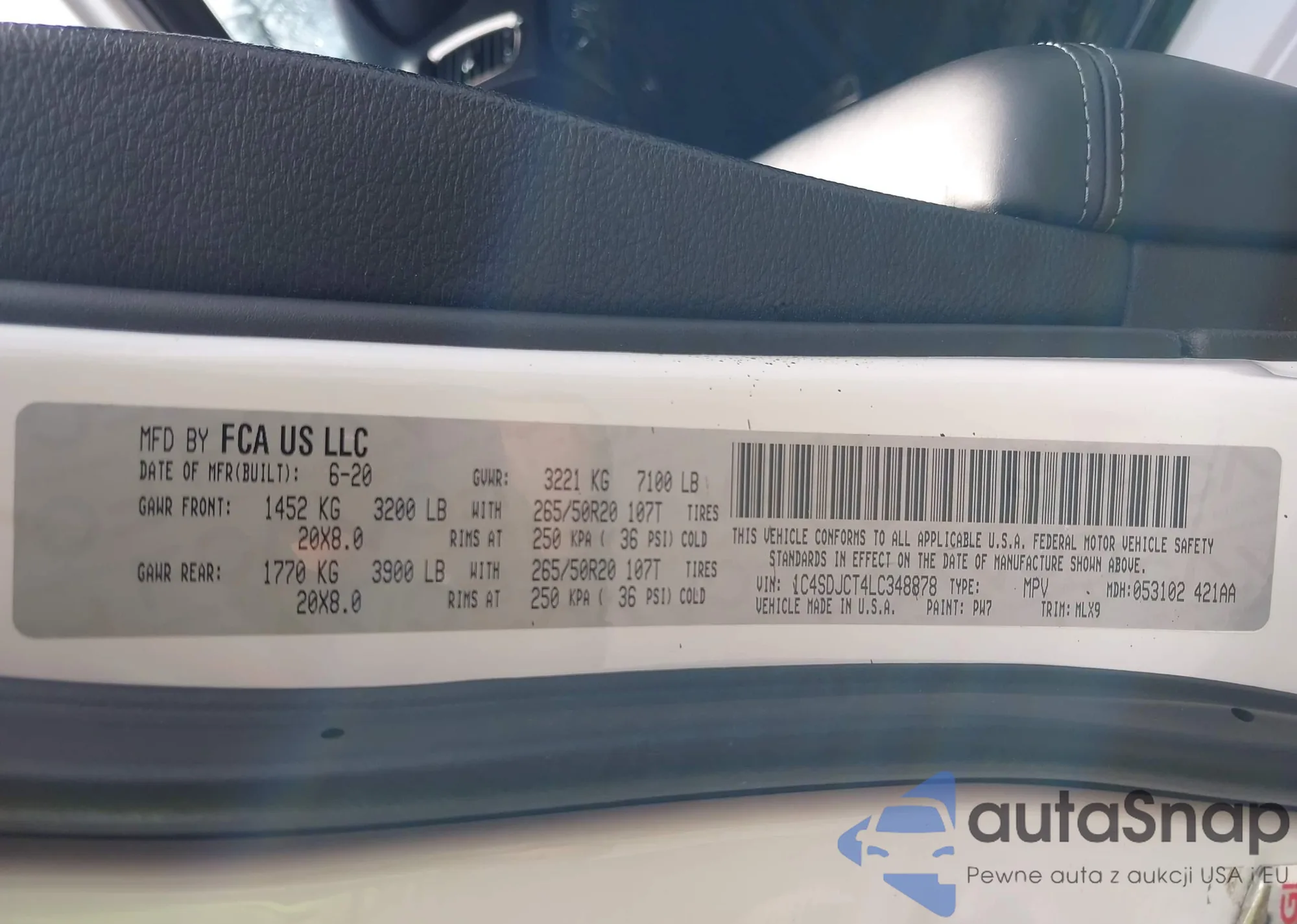 LOT: 43319488 VIN: 1C4SDJCT4LC348878