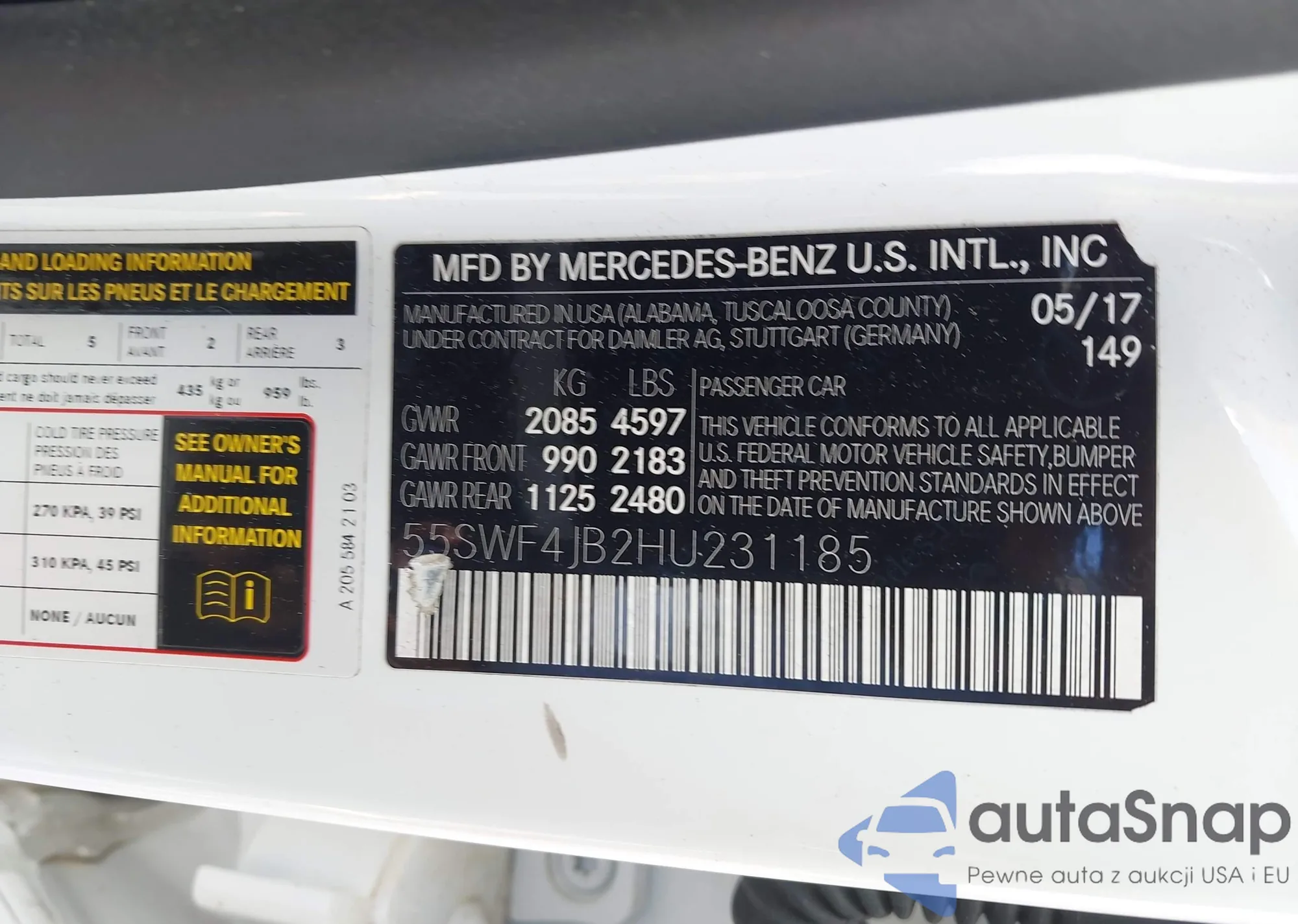 • VIN 55SWF4JB2HU231185
