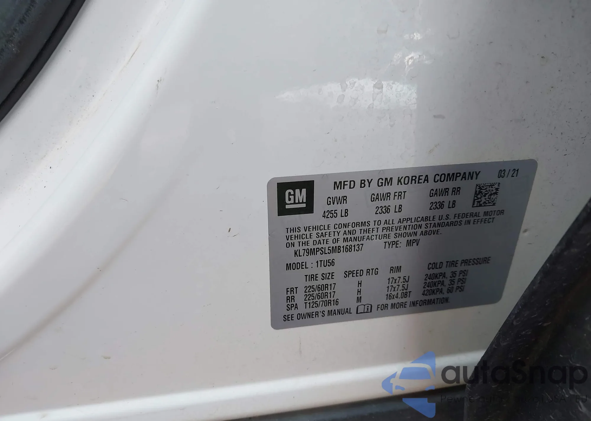 • VIN KL79MPSL5MB168137