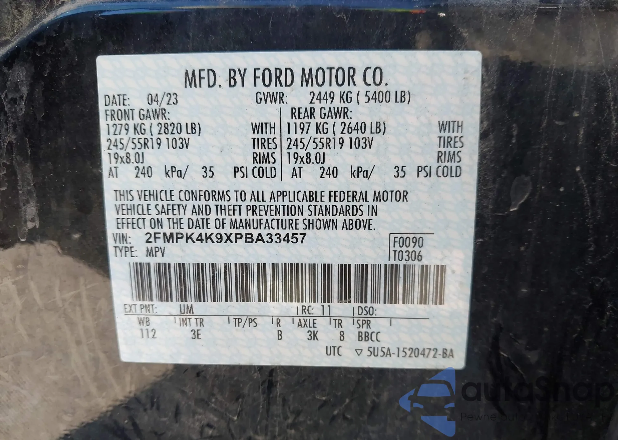 • VIN KNDPMCAC9L7765202