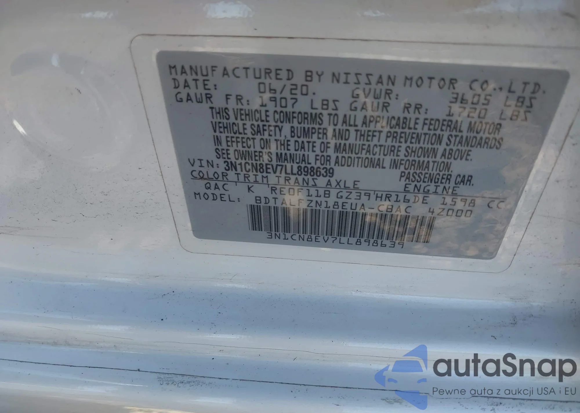 • VIN 3N1CN8EV7LL898639