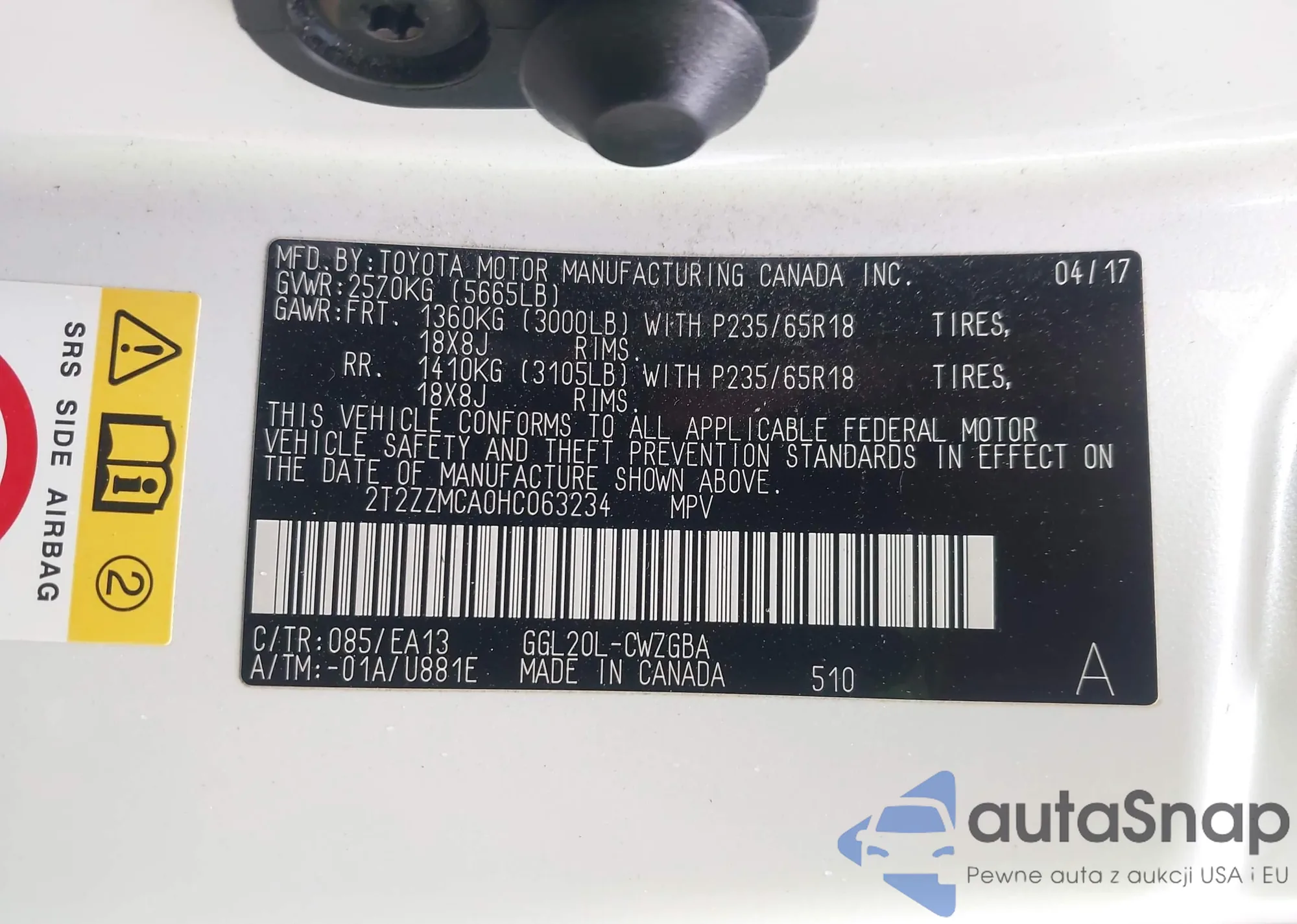 • VIN 2T2ZZMCA0HC063234