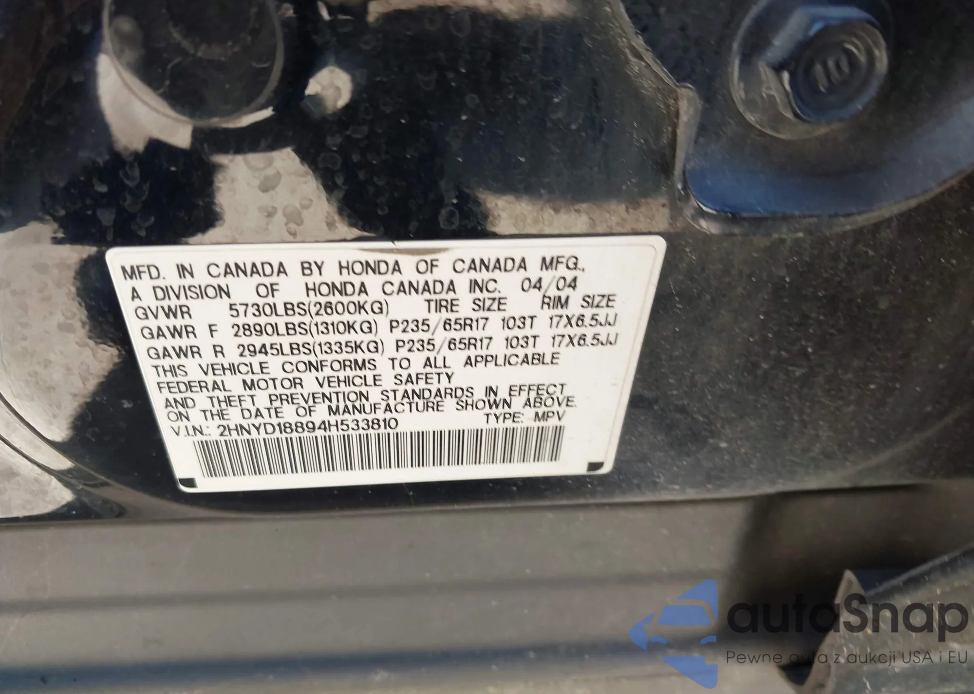 LOT: 43634325 VIN: JHLRD78844C002422