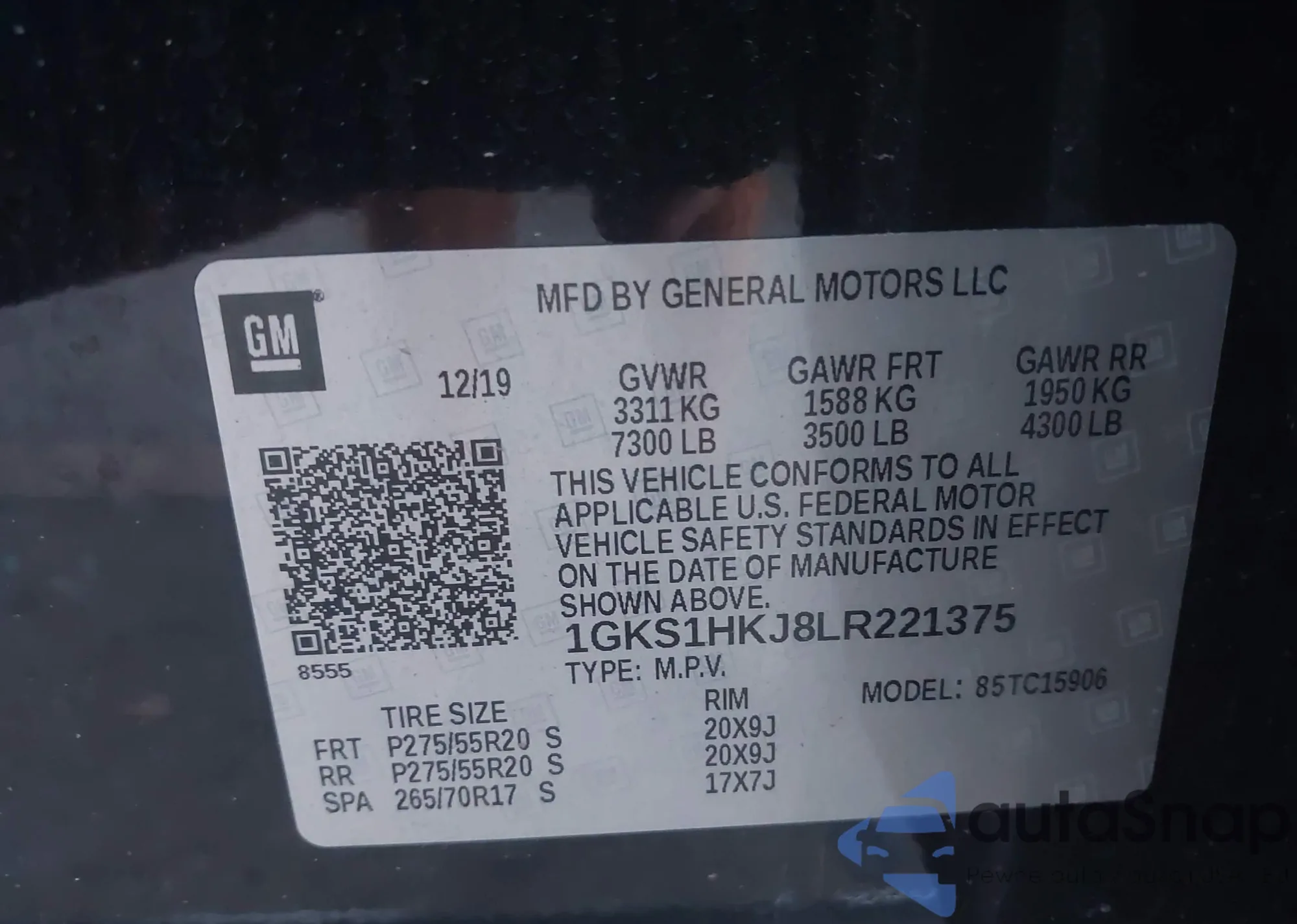 LOT: 42788093 VIN: 1GKS1HKJ8LR221375