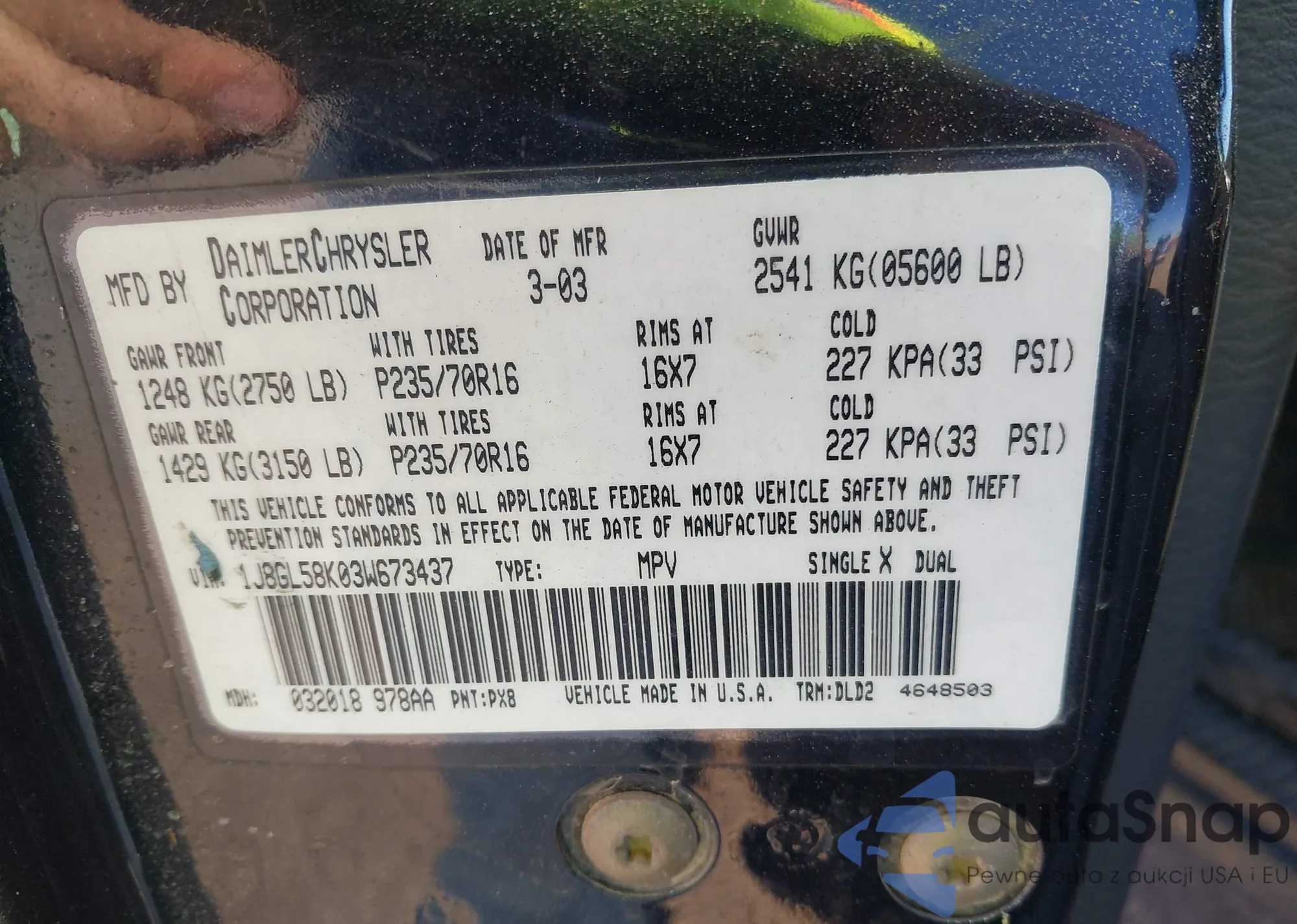 • VIN 1J8GL58K03W673437
