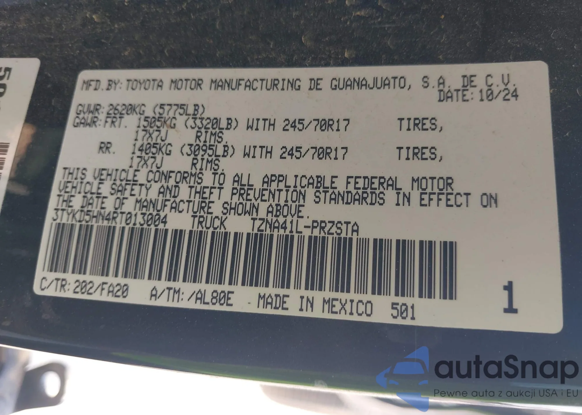 • VIN 3TYKD5HN4RT013004