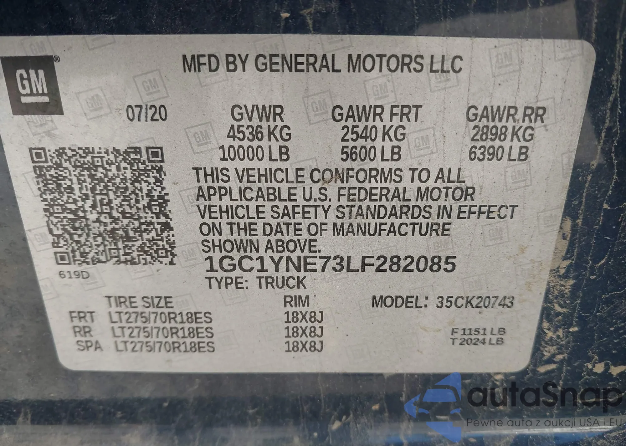LOT: 43360041 VIN: 1GC1YNE73LF282085