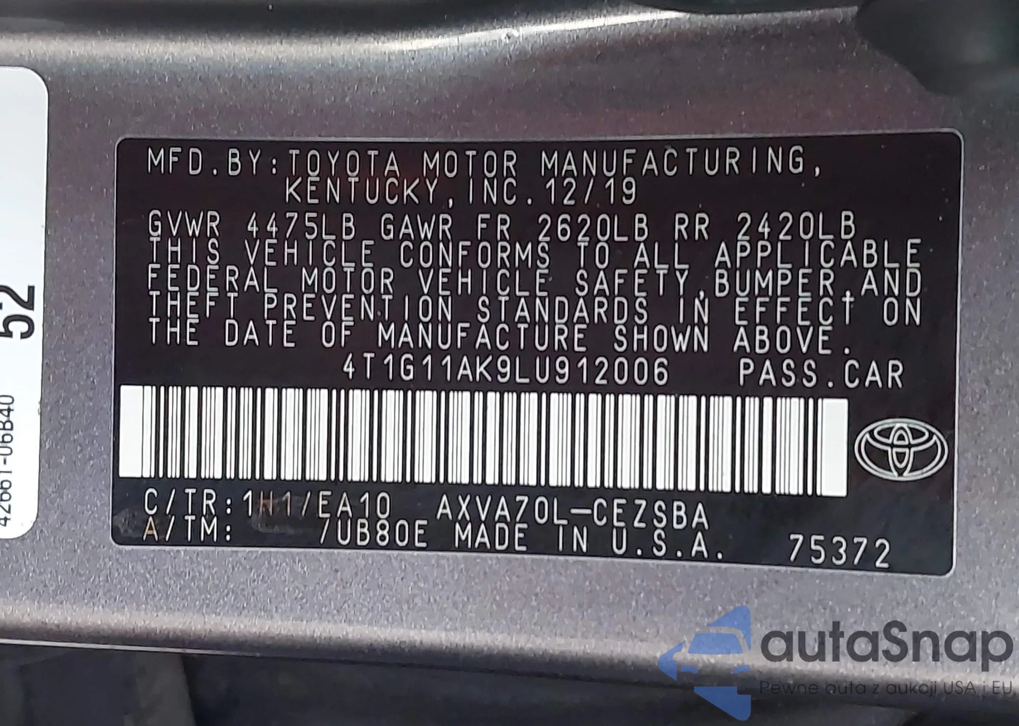 • VIN 4T1G11AK9LU912006