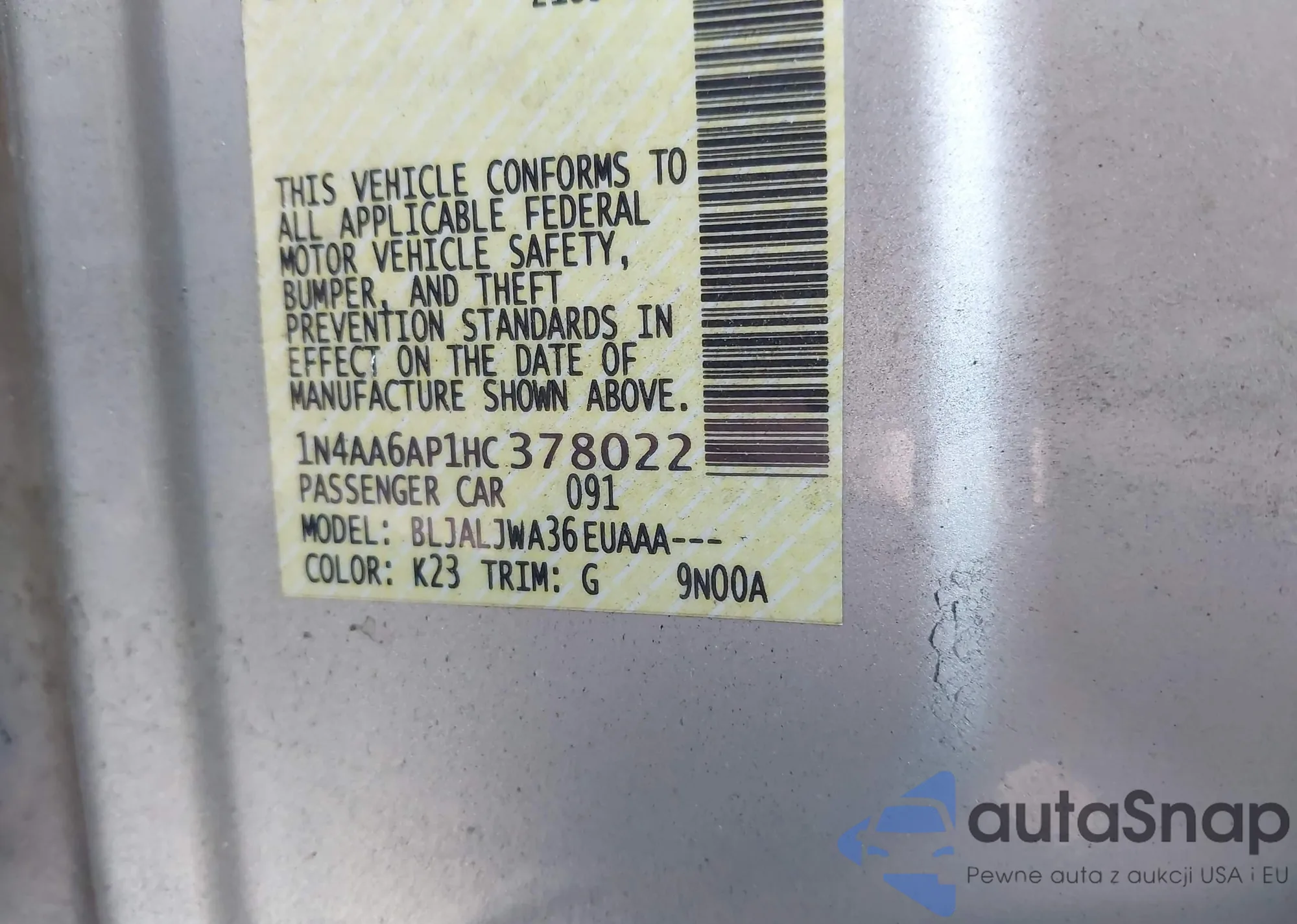 • VIN 1N4AA6AP1HC378022