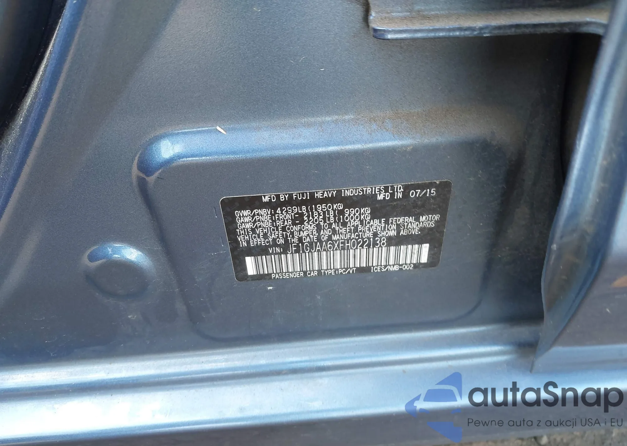 LOT: 43587680 VIN: WBAJA5C58KWW11011