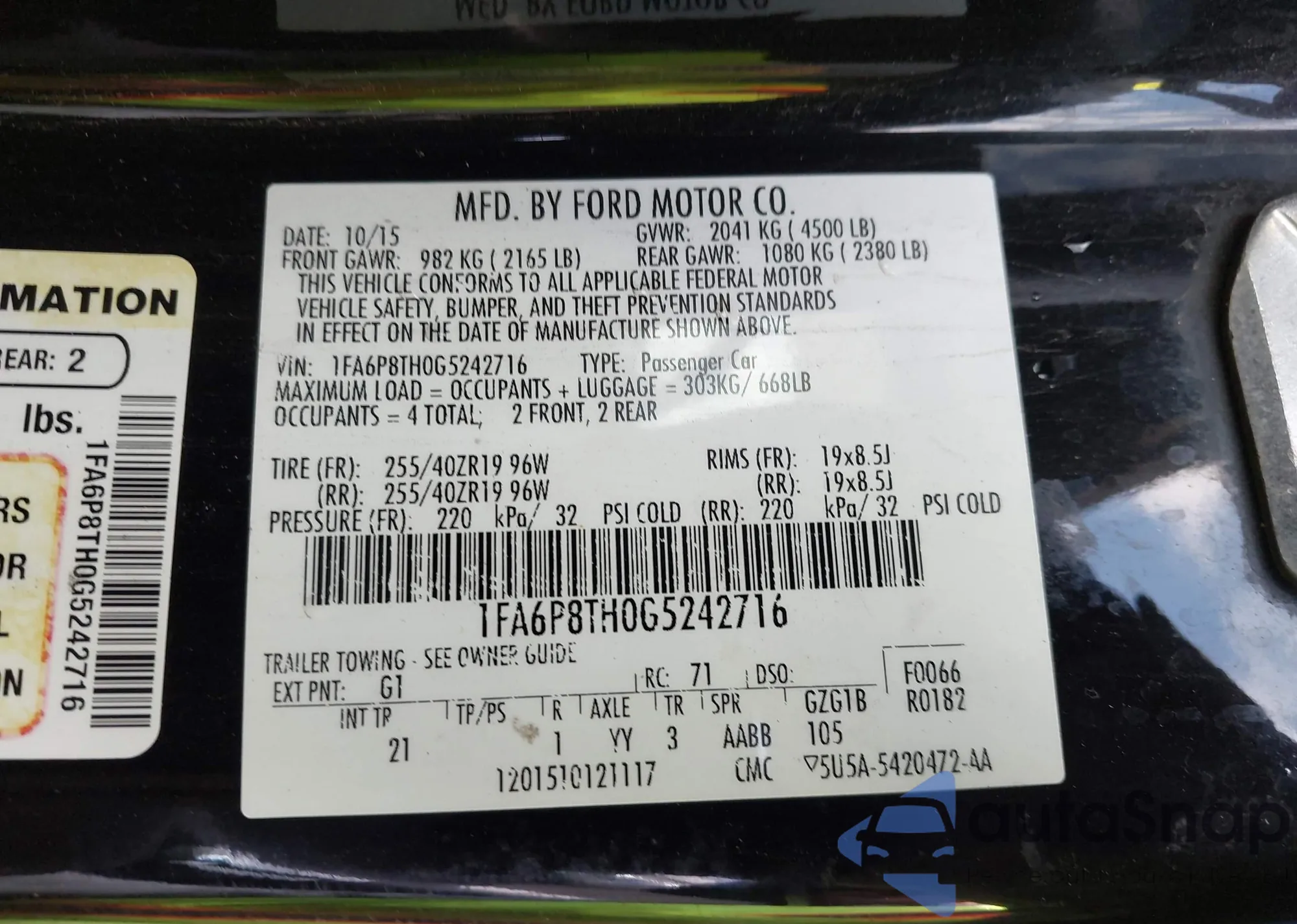 • VIN 1FA6P8TH0G5242716