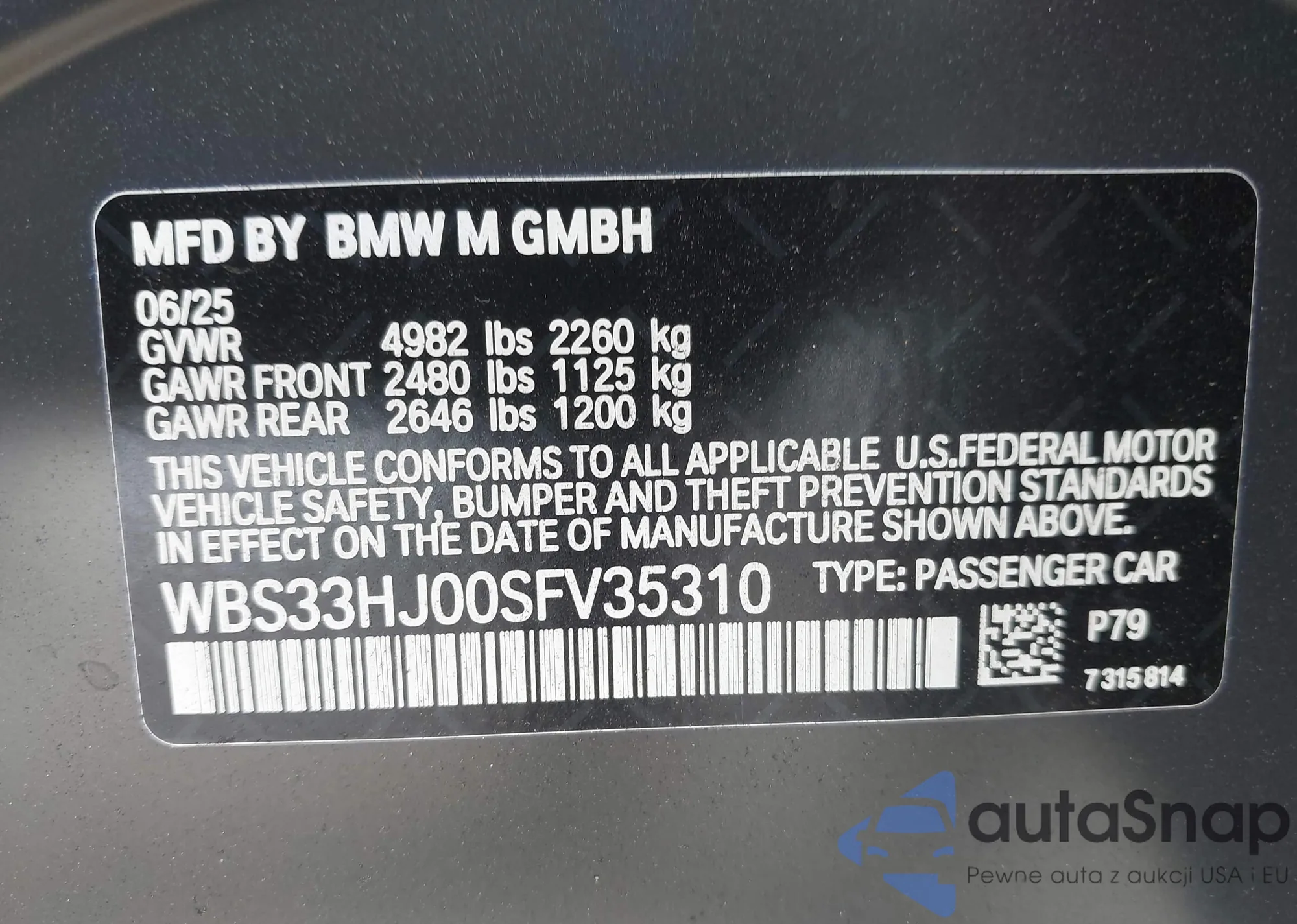 • VIN WBS33HJ00SFV35310