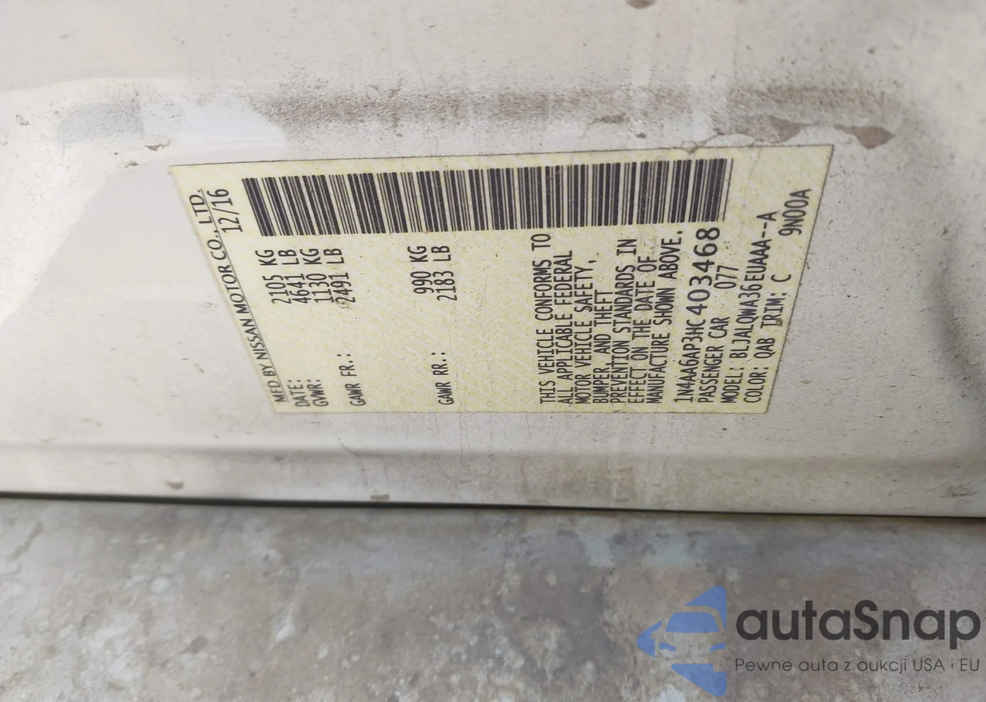 • VIN JN8AS5MT9DW549865