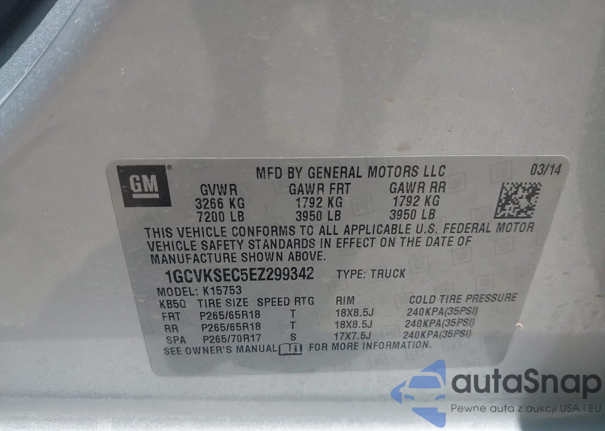 LOT: 42973182 VIN: 1GCVKSEC5EZ299342